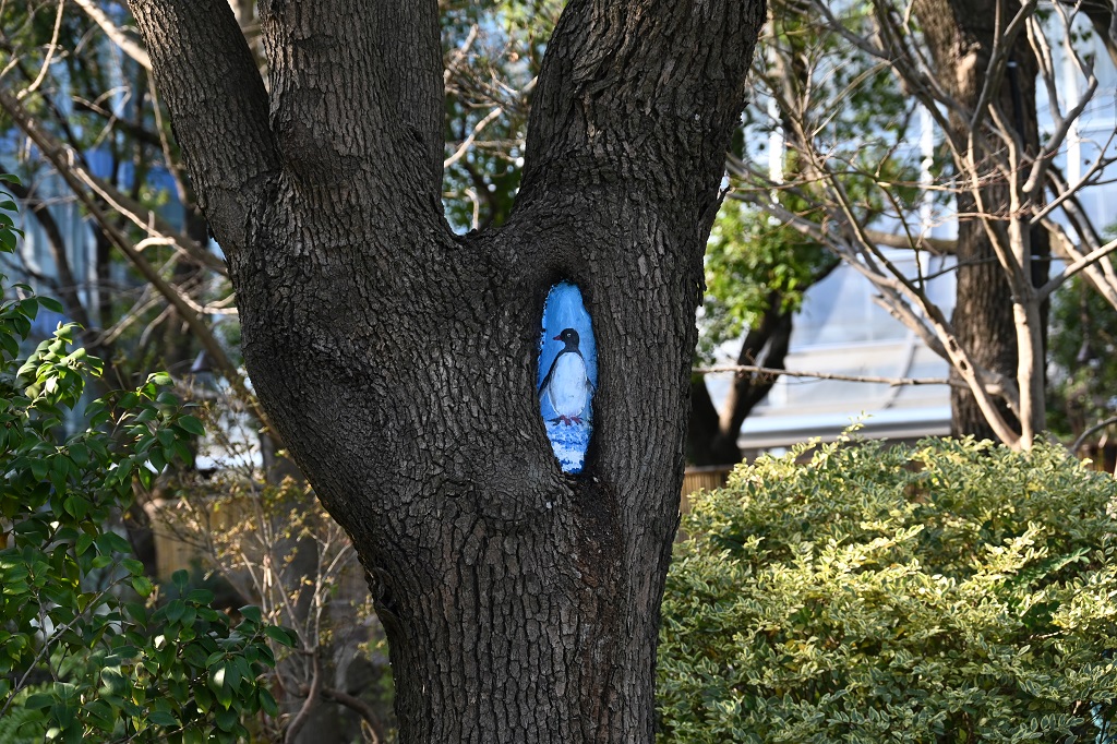 在北外滩滨江绿地,主干道旁四棵大型乔木树的树洞也“爬”上了“孔雀”、“企鹅”等。工作人员介绍,专业人员在彩绘前,先对树洞创面的腐烂物进行清理,再对树洞进行填充、表面打磨和防水等处理,并选用了安全环保的丙烯颜料,根据不同的树洞形状进行绘画创作。树洞作画是利用油彩的保护膜在创面起到修缮、遮盖、保护、防止树洞创口水分流失的作用,不仅美观、新颖,还不会伤害树木,且美化效果持久,一般能保存两年,为环境增添了许多生机。