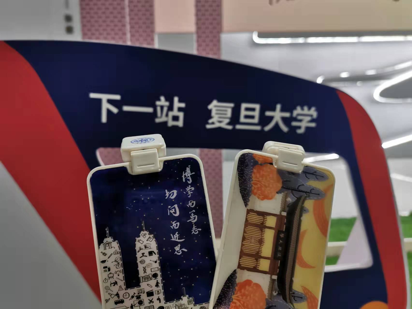 今天早上,复旦大学党委书记焦扬等一行看望慰问地铁复旦大学站站务人员,迎接“第一批复旦乘客”,并赠送复旦大学定制交通卡套。“秋时缘起忆校门;半夏风华正相辉;博学笃志旦复旦;梦有星辰耀光华”。这四幅图由复旦大学宣传部牵头、学生和校友创作设计,经联系学校信息办和上海复旦微电子集团股份有限公司,现已作为“复旦大学上海公共交通联名卡”电子卡卡面在“上海交通卡”App上线使用。