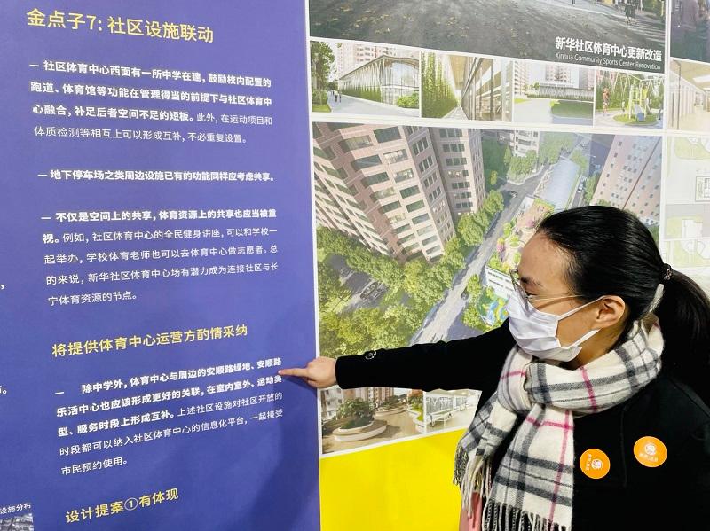 在征集展示会现场,记者遇到了好几位前来提建议的居民。74岁的贺国萍阿婆在新华街道住了近30年,在得知家门口的这个社区体育中心要改建的消息后,她特地前来。