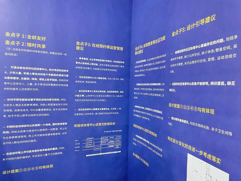 记者从新华街道方面了解到,为了能够让大家更好地了解到这些金点子,其还会持续举办展览,将40份提案的内容汇总、分类形成15类金点子。这些意见涉及了空间、场地、管理、内容等方方面面,既代表了大众对使用现状的观察与思考,也是对更新后的体育中心的期许。