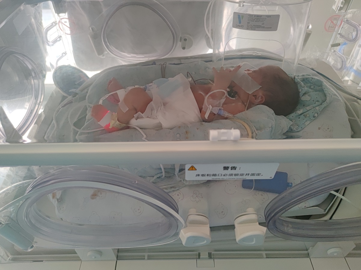 小敬敬,是一个双胞胎早产儿,孕32周就出生了,才出生23天的他肚子一天比一天鼓起,高度疑似坏死性小肠结肠炎。