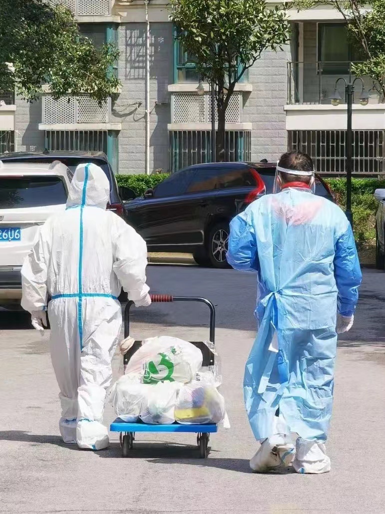 一部小小的手推车,或许就能为我们辛苦奔忙于防疫一线的社区干部和志愿者们减轻一些工作量。