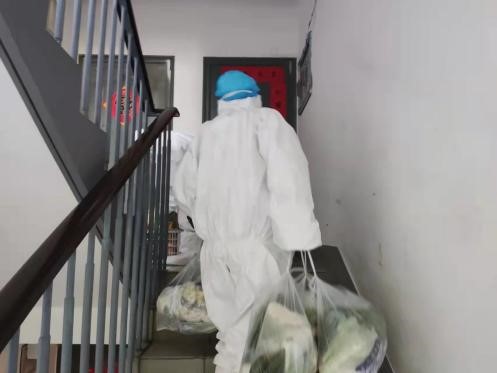封控楼生活保障怎么办?物业公司勇挑重担,经理董琳媛带领着保安、保洁工作人员身着防护服挨家挨户送物资。碰到居民的医疗物资,工作人员更是开启“闪送”模式。一早六点,保安孙师傅来到居民俞阿姨家收取氧气空瓶。等换好后,孙师傅扛起几十斤的新氧气瓶爬上四楼顺利送达。“对我而言,这是比菜、粮、油更重要的东西……我足不出户,氧气瓶已经换好送到家,我心定了。”居民俞阿姨感谢道。