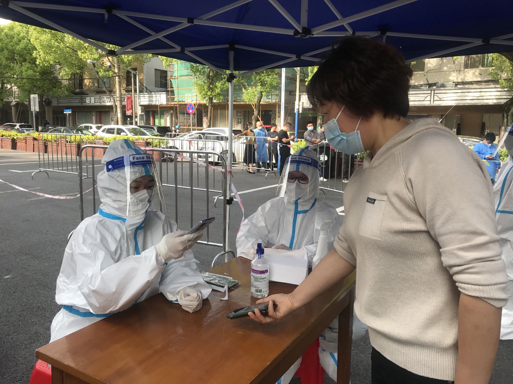 “我们的店就在附近,骑电瓶车到这里,不到10分钟。”张华告诉记者,他是今年3月初入职盒马自提店的,随着疫情的发展,自提店早已经从居民“自提”变成了送货到小区门口。“现在我们的上岗要求是,一天两次抗原,一次核酸。之前如果没有这样的便民核酸采样点,需要赶到10公里外的固定采样点,非常麻烦,对工作真的很有影响。”