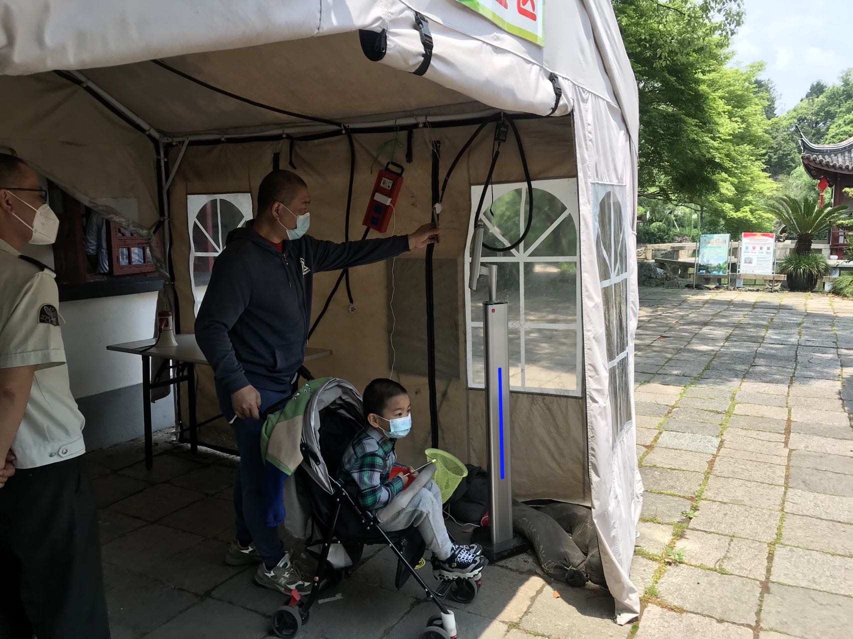 “这个数字哨兵有测温功能,扫一下身份证或随申码,马上就能显示你的核酸检测情况。只有体温正常,拥有48小时内核酸阴性证明的游客,设备会显示‘可以进入’。”一旁的保安笑着告诉记者,公园8点开始开放的,几乎所有的游客都是有备而来,十分配合。