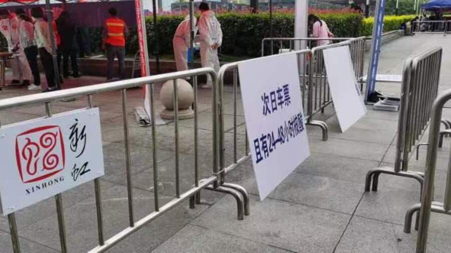 此时,小波更紧急的需求是手机充电。他的手机只有一格电了。但张站长不敢让他进入工作站,因为其最近一次核酸报告已是4天前。一个路过的女孩子提醒小波,步行10分钟左右,有个宾馆门口有露天充电的地方,“不过很抢手”。