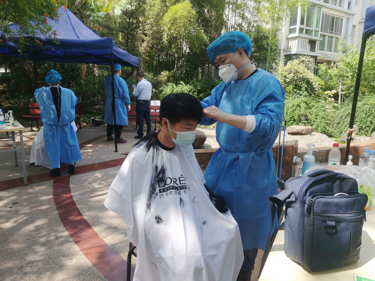 有居民表示,因为封控前没有及时理发,已经3个月没有剪发。虽然露天剪发稍许简单,但毕竟头势一下子清爽了很多,整个人变得很精神,也是在为即将到来的复工做准备。