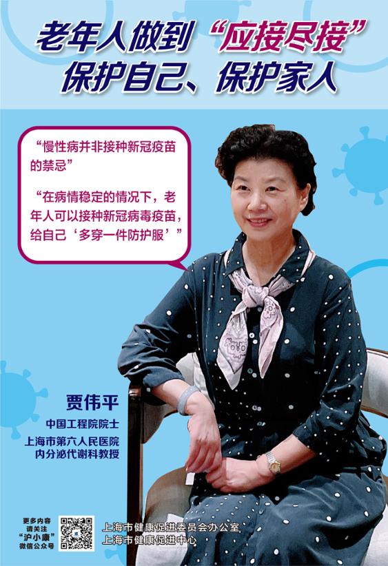 “对老年朋友而言,接种新冠疫苗最重要的获益就是可以预防重症乃至死亡。”“慢性病并非接种新冠疫苗的禁忌。”7月28日,市健康促进委员会办公室、市健康促进中心特别推出一组最新海报,闻玉梅院士、贾伟平院士呼吁:接种新冠疫苗,保护老年人健康。