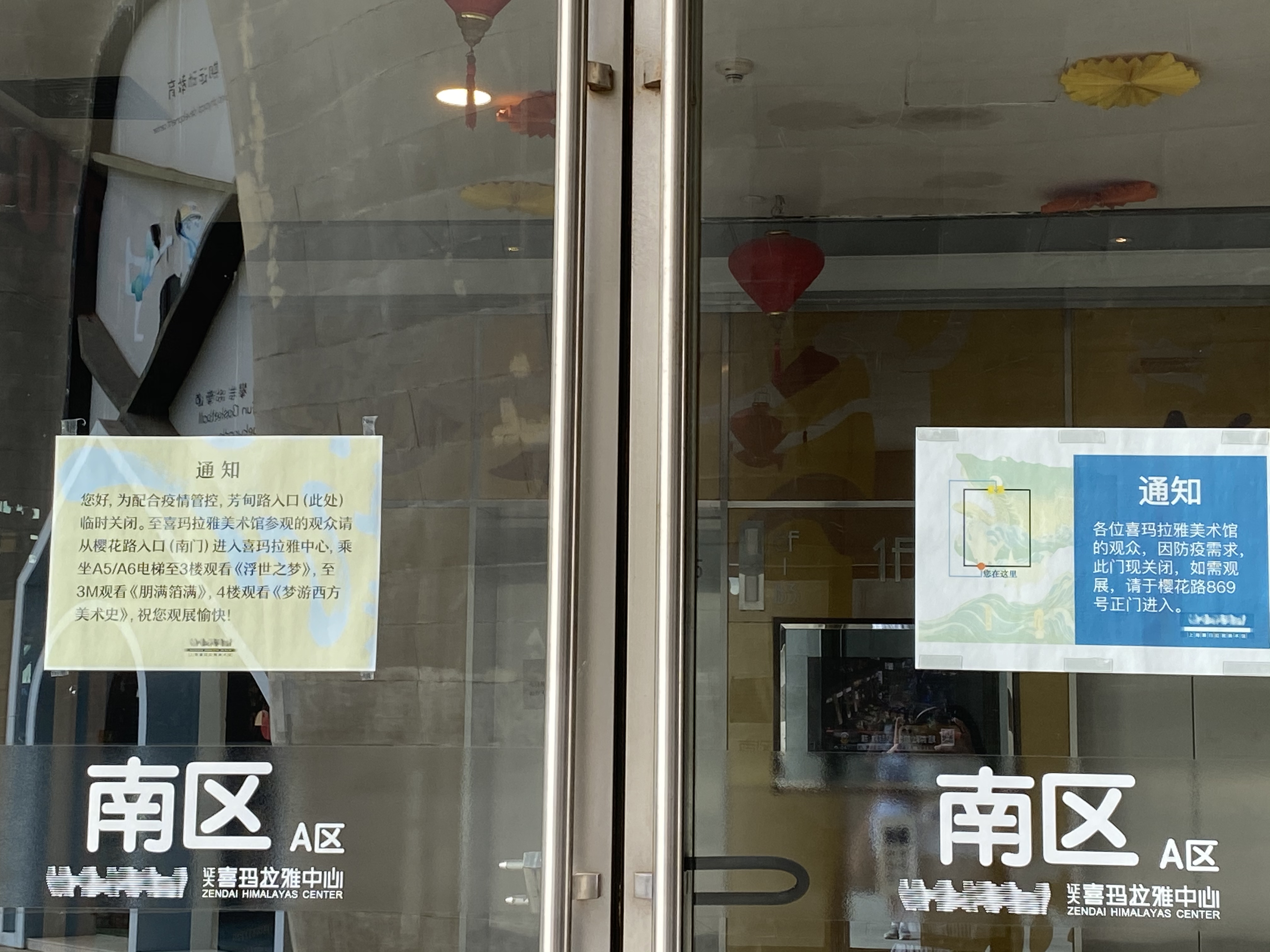 但在另外剩余的五个出入口,则均采用了关门的管理方式。记者发现,玻璃门上都张贴了“为防止疫情,本出入口暂时关闭,请从其他出入口进出”的告示,并配备了软绳安全线,其中一扇玻璃门上则直接上了一把环形锁。