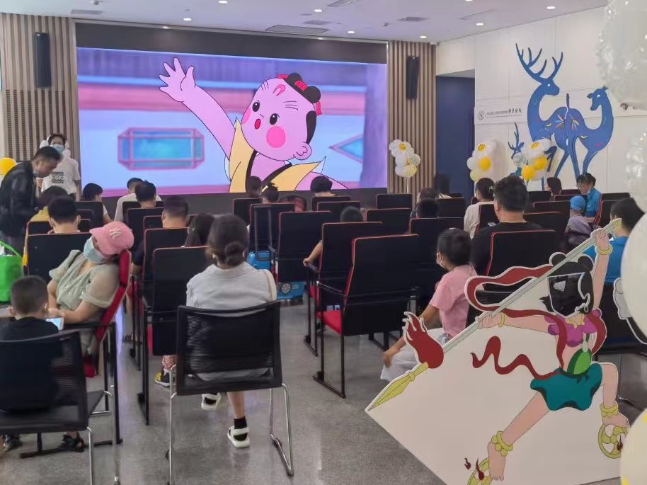 除了有《大闹天宫》《哪吒闹海》《九色鹿》等上美影经典动画的放映,哪吒、孙悟空、黑猫警长、葫芦娃还以合影板的形式来到现场,与孩子们互动留影。这些勇敢又可爱的上美影经典动画角色,组成了“上影国漫英雄联盟”,将快乐、勇气与力量带给这里的孩子们。