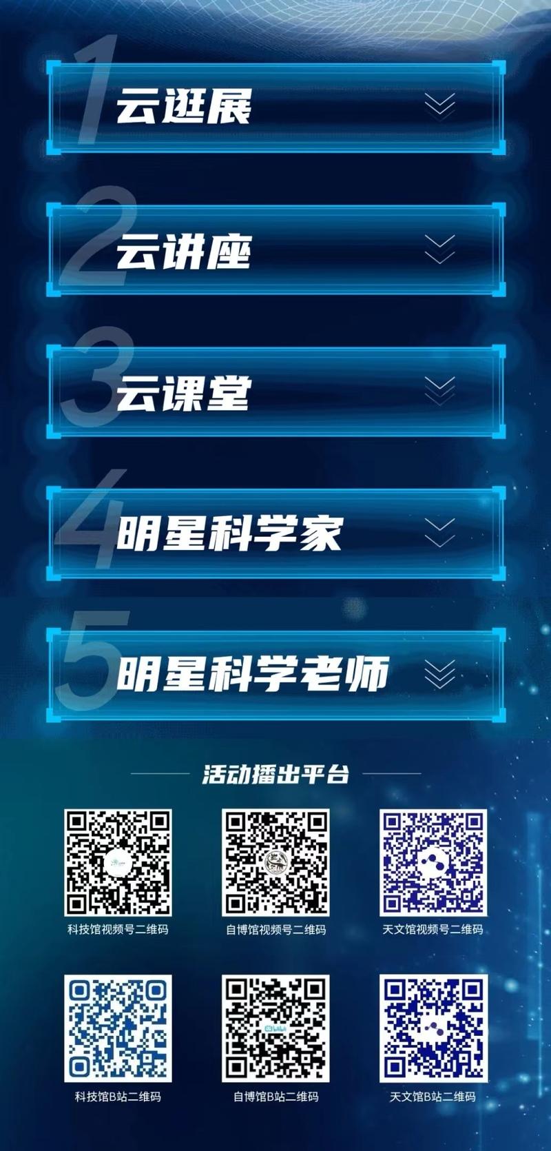 8月20日,上海科技馆“科普进五个新城”启动仪式在首届上海国际科技传播大会上举行。7天活动中,上海科技馆特别推出“科普进五个新城”线上专场活动,策划推出3朵“科普云”,即“云逛展”“云讲座”“云课堂”,联合6位明星科学家和8位明星科学老师,7天带来20场线上直播活动,为新城及全市市民带来不间断的科学盛宴。