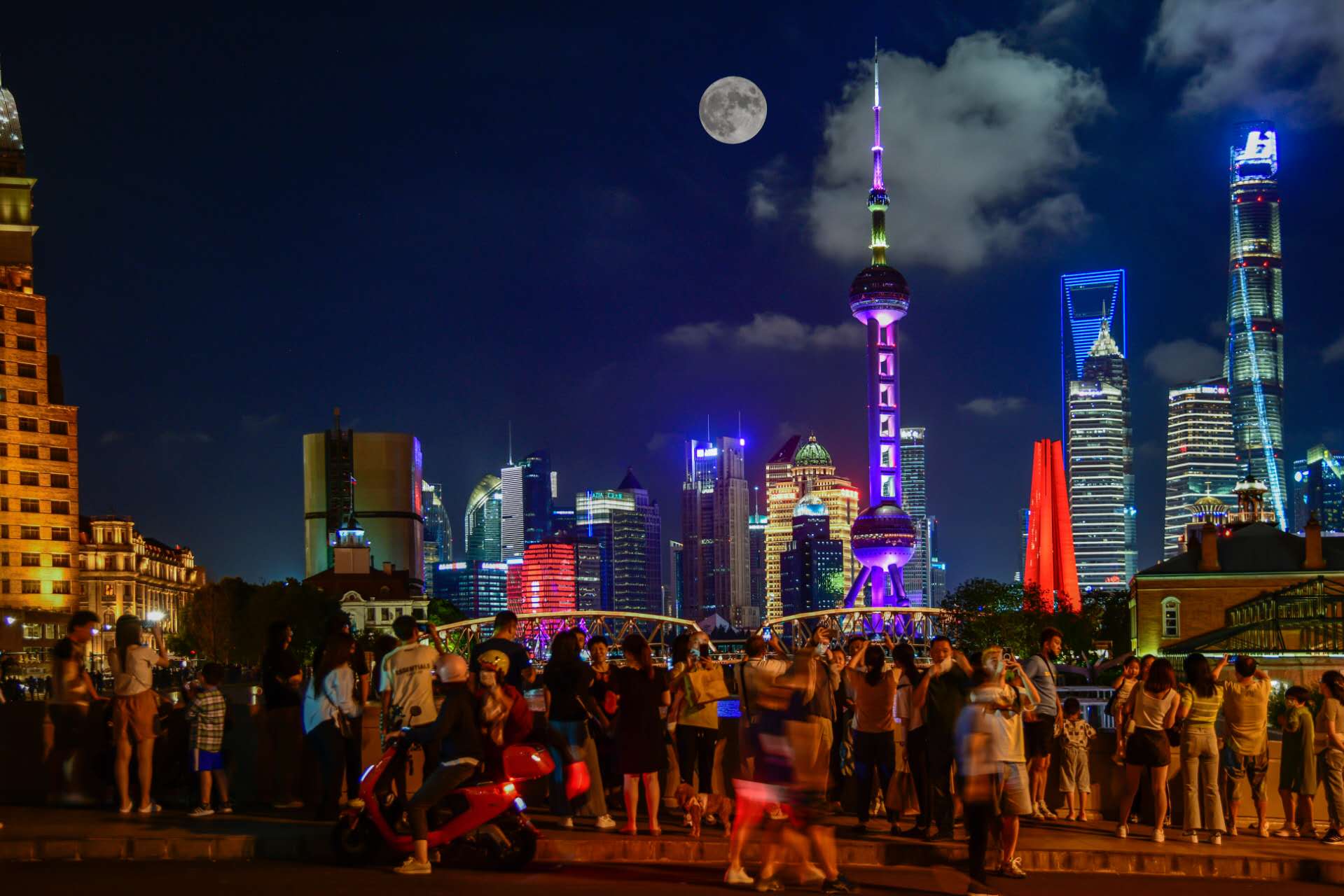 中秋佳节,上海黄浦江苏州河两岸月影绰约,不少市民沐浴着清朗的月光,欣赏绚烂夜景。
