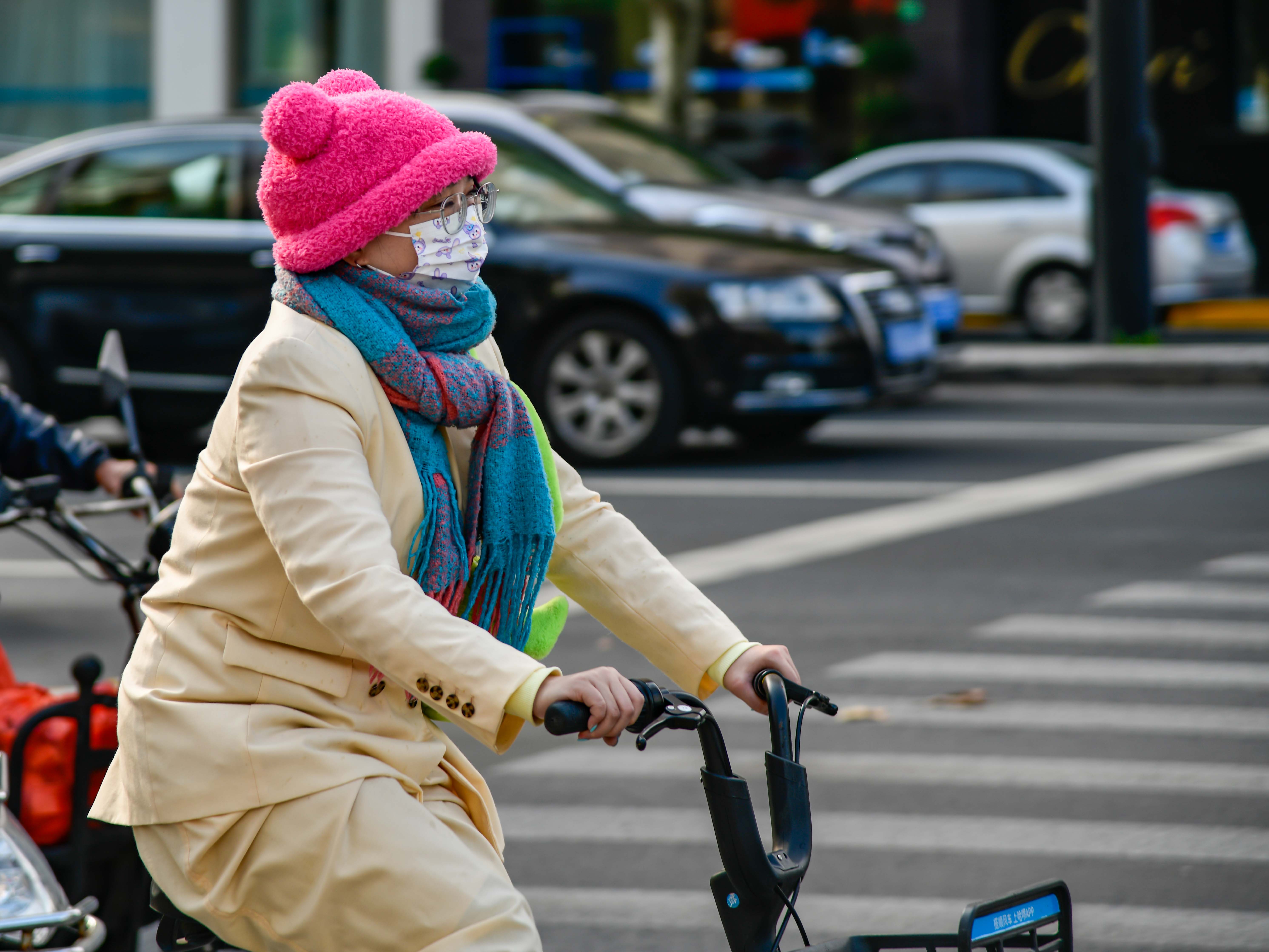 今早,不少市民出门已穿上厚衣物,也有人带上围巾和帽子抵御这波降温。