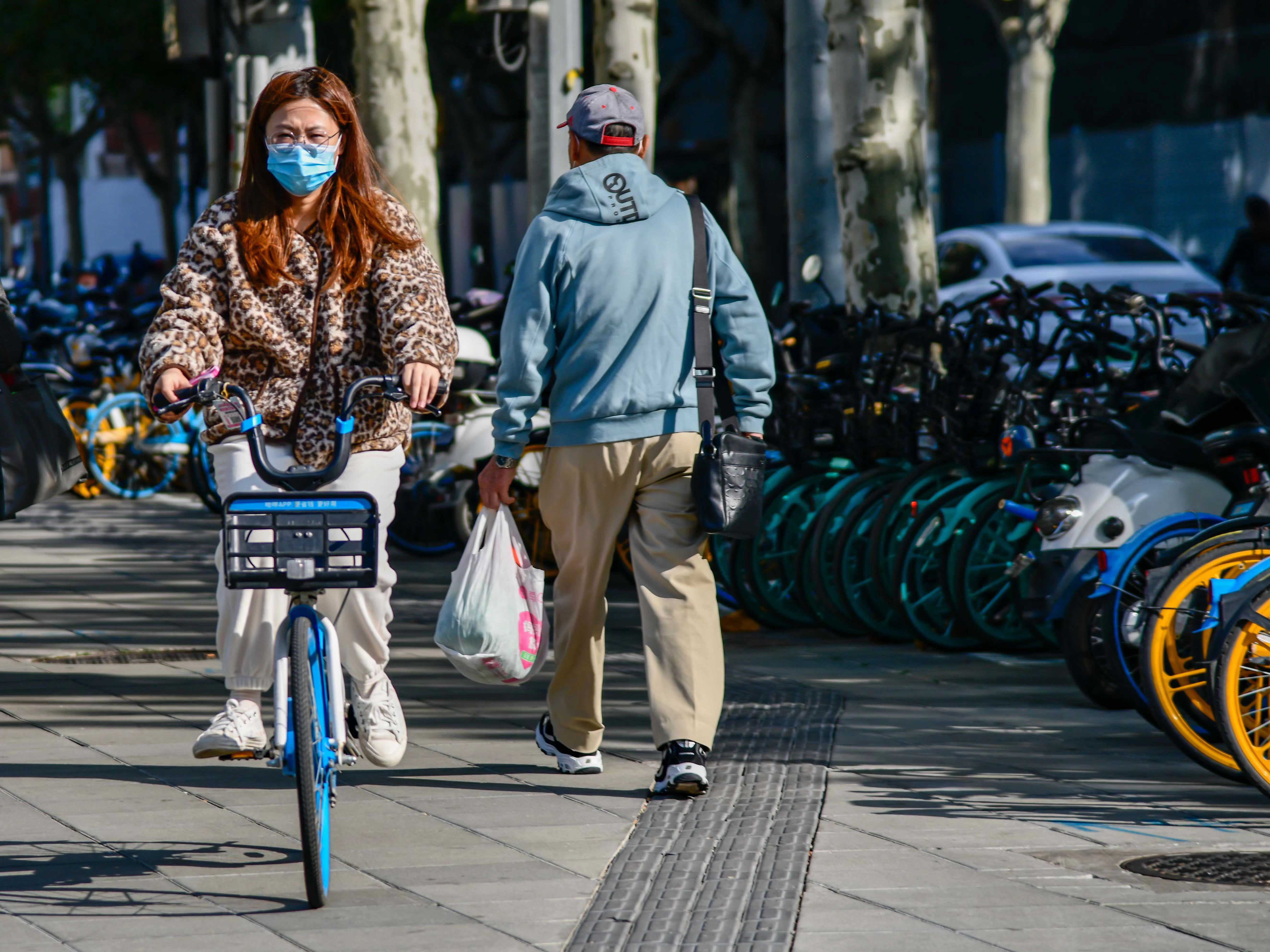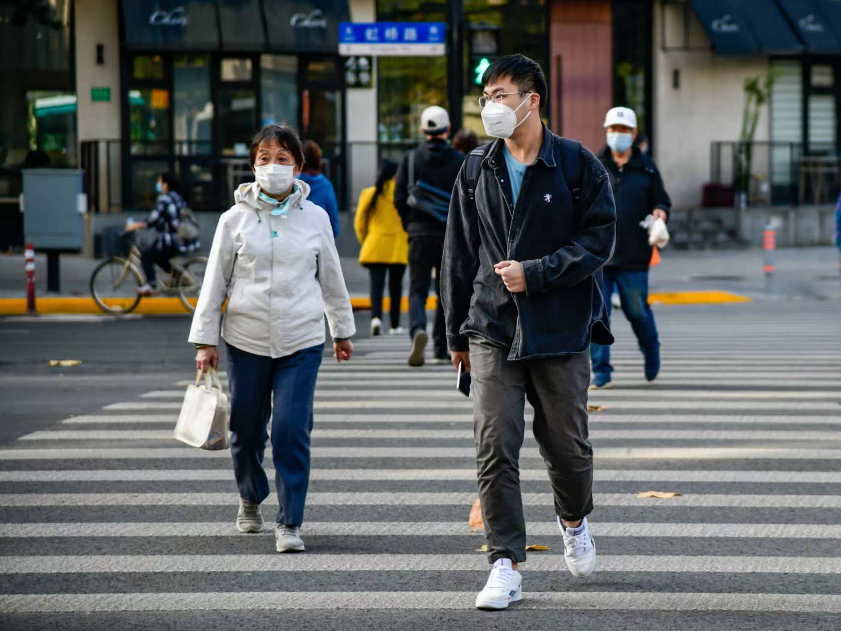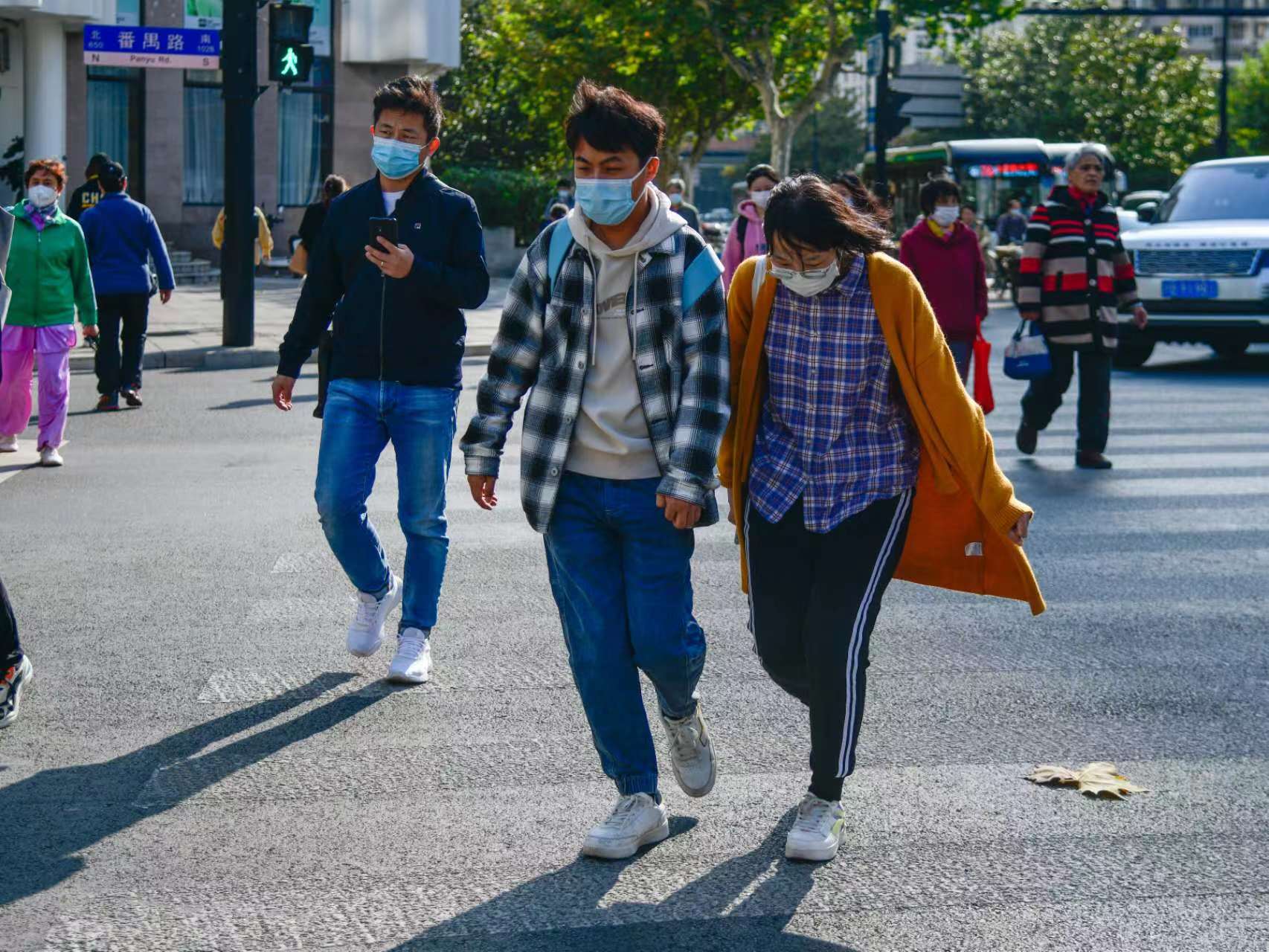 多图|冷空气抵沪,大风降温,市民增添衣物