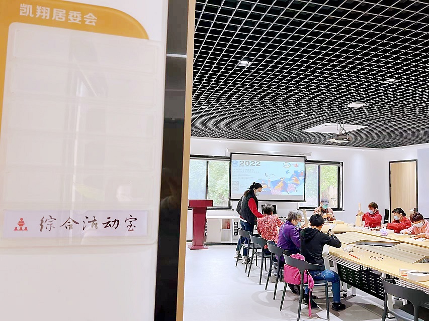 新居委会“挂牌开门”后,迅速成为了居民们的“网红打卡点”。针对缺少活动阵地这一老小区居委会的痛点,迁移到沿街位置后,现在的凯翔居委会不仅是办事场所,更是开在居民家门口的“公共客厅”。