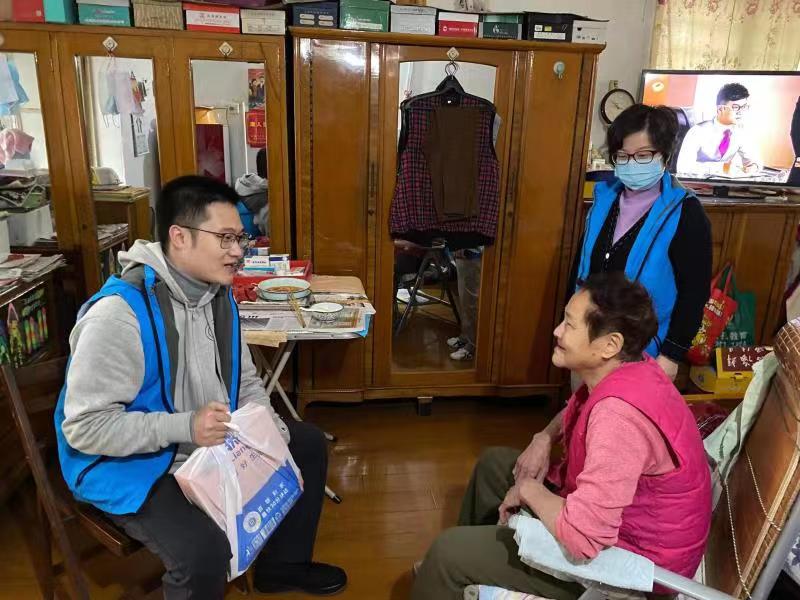 嘉兴路街道市民驿站第一分站内的“创意坊”手工达人们为社区老人编织了一批围脖和手套,给社区里的困难老人送过去。临平居民区90后新任居民区党总支书记程怀远,一早就到86岁的黄秀英阿婆家,看望老人并送上面条等生活物资,查看老人家的用电情况等。