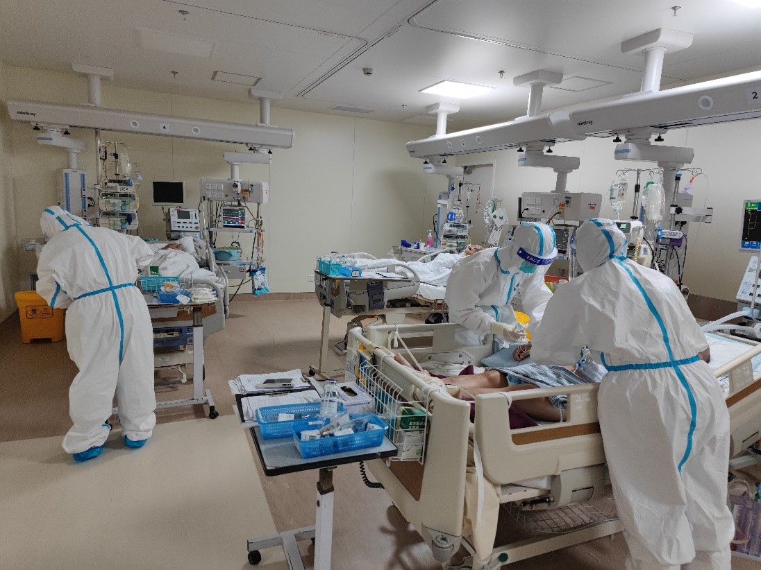 患者与病区的分级由院内救治专家组统一设定,专家组由麻醉与重症医学科、急诊医学科、呼吸内科、神经内科、消化内科、肾脏内科、心血管内科、内分泌科、普外科、心胸外科等科室专家组成,共分为4组,每组5名专家,轮值排班,负责对当天滞留急诊患者进行评估分类,对于所负责的住院病区新冠病毒感染住院患者进行指导救治。目前,医院正全力救治重症患者。