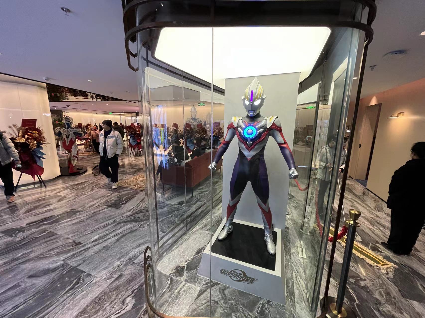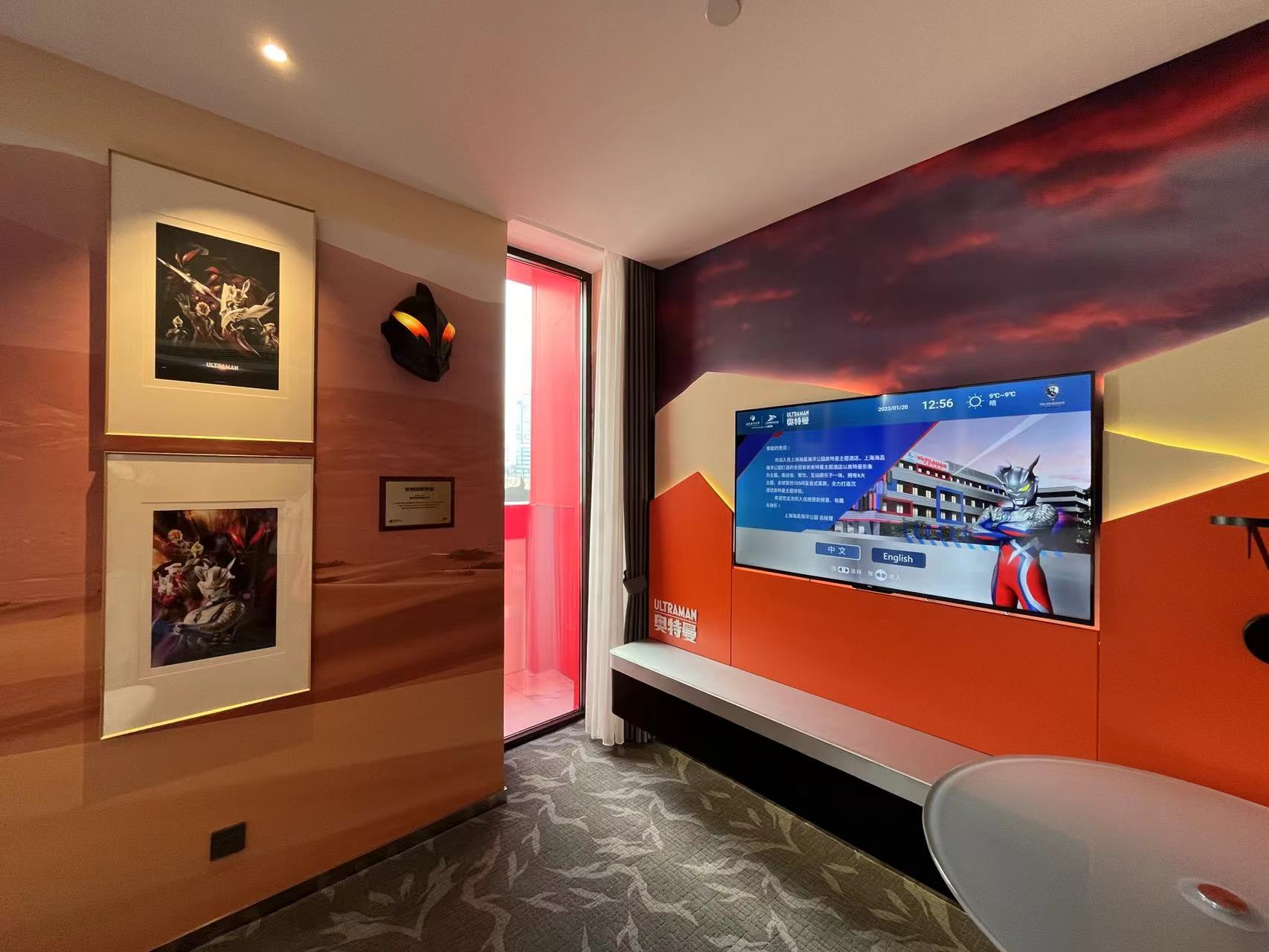 在公共区域,奥特曼酒店也颇为吸睛。除了大堂里树立的奥特曼模型,电梯门上也有神光棒的元素。而在2、3楼,还有迷你影院,娱乐区等区域让粉丝圆梦。