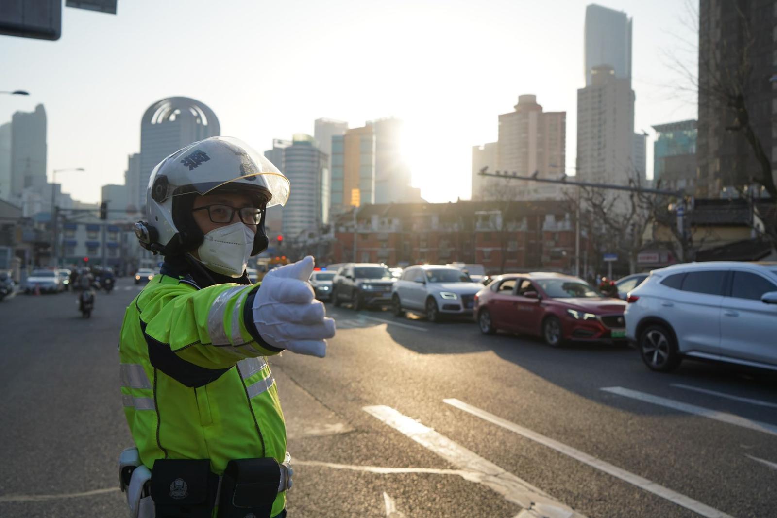 (浦东交警启用两轮巡逻疏导车流)