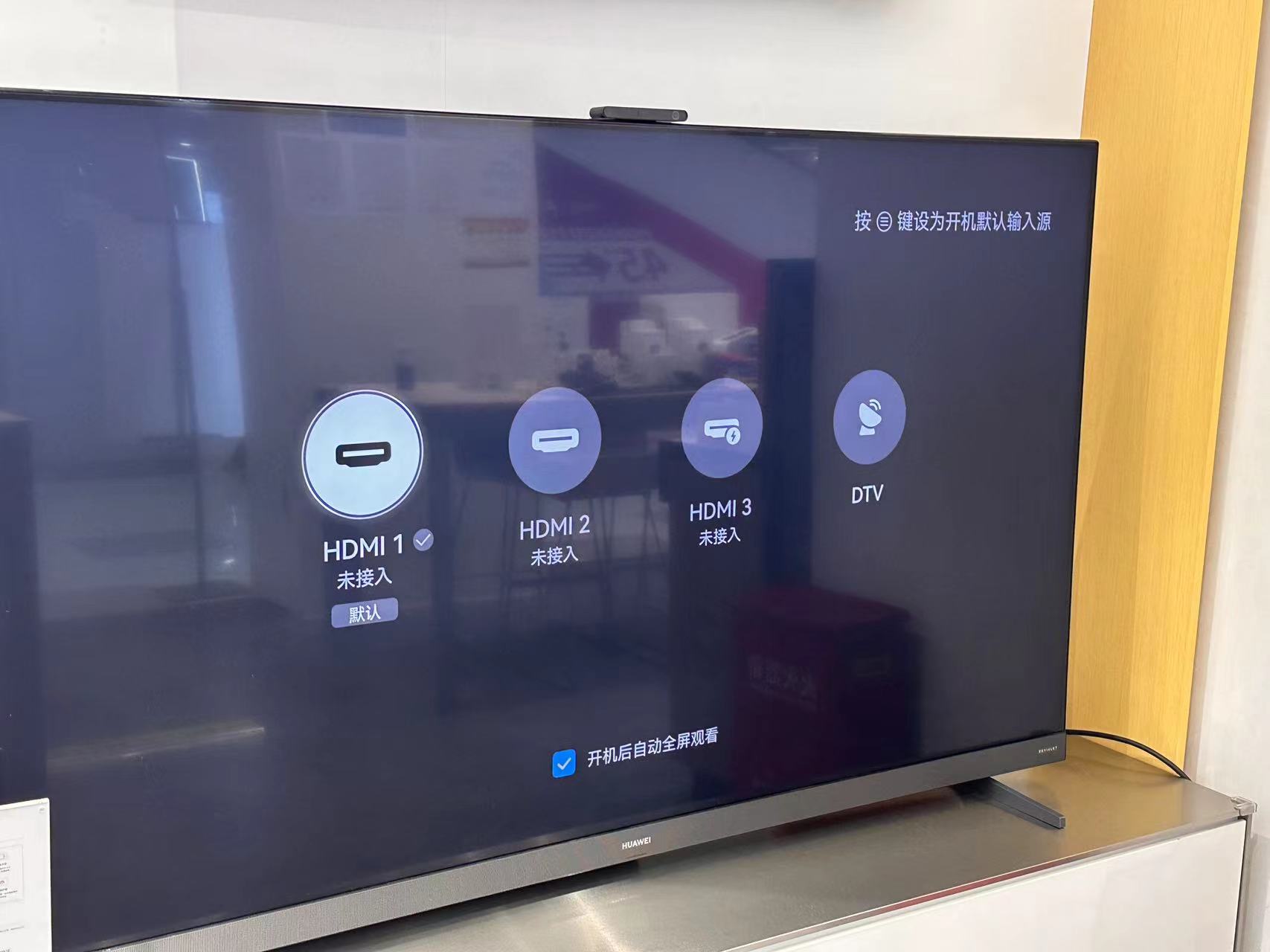 另一家电视机销售员给记者现场演示,在设置中选中“开机默认输入源”,就可以开机看电视。不过由于商场内没有机顶盒,该做法能否成功还有待验证。