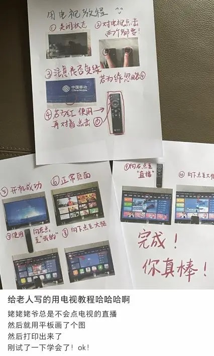 “其实,子女、邻里都应该把让老人看上电视作为一件上心事,很多老人不好意思麻烦家人,应该主动问问老人‘要不要我帮你开电视,设置好’。”在他看来,这是一个很好的关爱老人的切入点。
