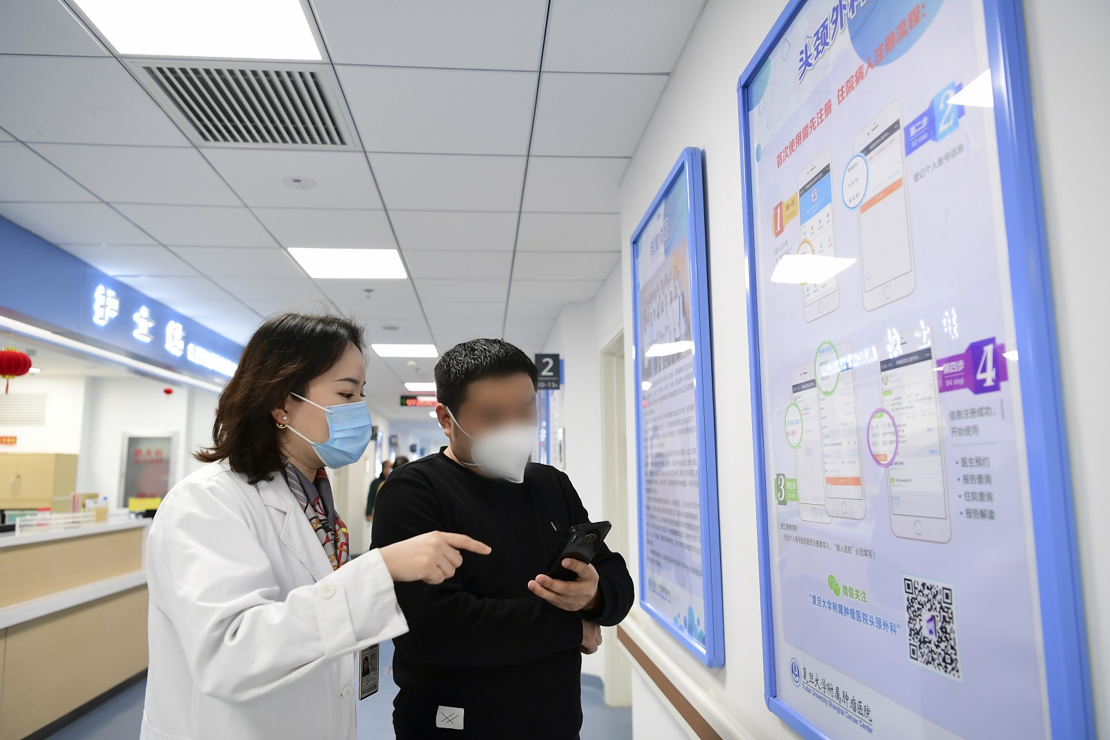 头图为患者在肿瘤医院扫码体验数字就医新场景。肿瘤医院供图