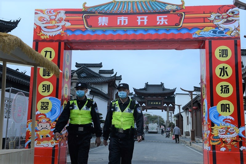 同时,在自有警力的基础上,叠加了古镇特保、城管队员、志愿者等力量,在活动重点日期间,安排70余名警力,分散至古镇出入口、蛇形通道、停车场等区域维护现场及周边交通的秩序。