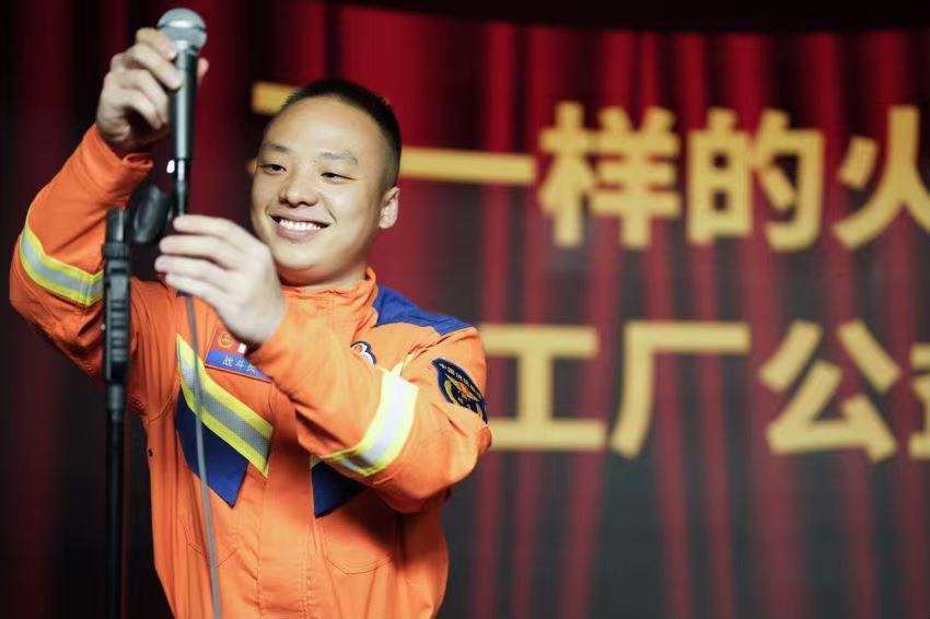 头图为消防员通过脱口秀的形式来进行科普。消防部门供图