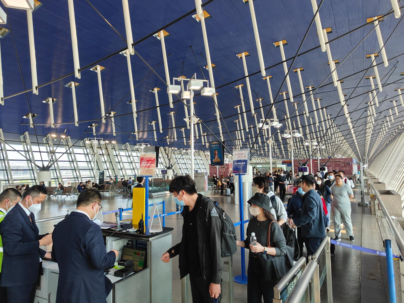 为了应对“五一”假期客流的持续攀升,东航在上海两大机场的值机柜台全部开放,在各个点位增派引导人员,引导旅客使用自助值机设备和自助托运设备分流旅客。为了更加快速便捷地分流旅客,东航还在值机区加派巡视人员,定时通报提示即将关闭办理值机手续的航班,及时引导此类旅客前往“晚到旅客”专柜办理相关手续。通过增加航线、补充运力、增派人手、优化服务等措施,东航全力保障旅客出行安全顺畅,让旅客体验优质的航空出行服务。
