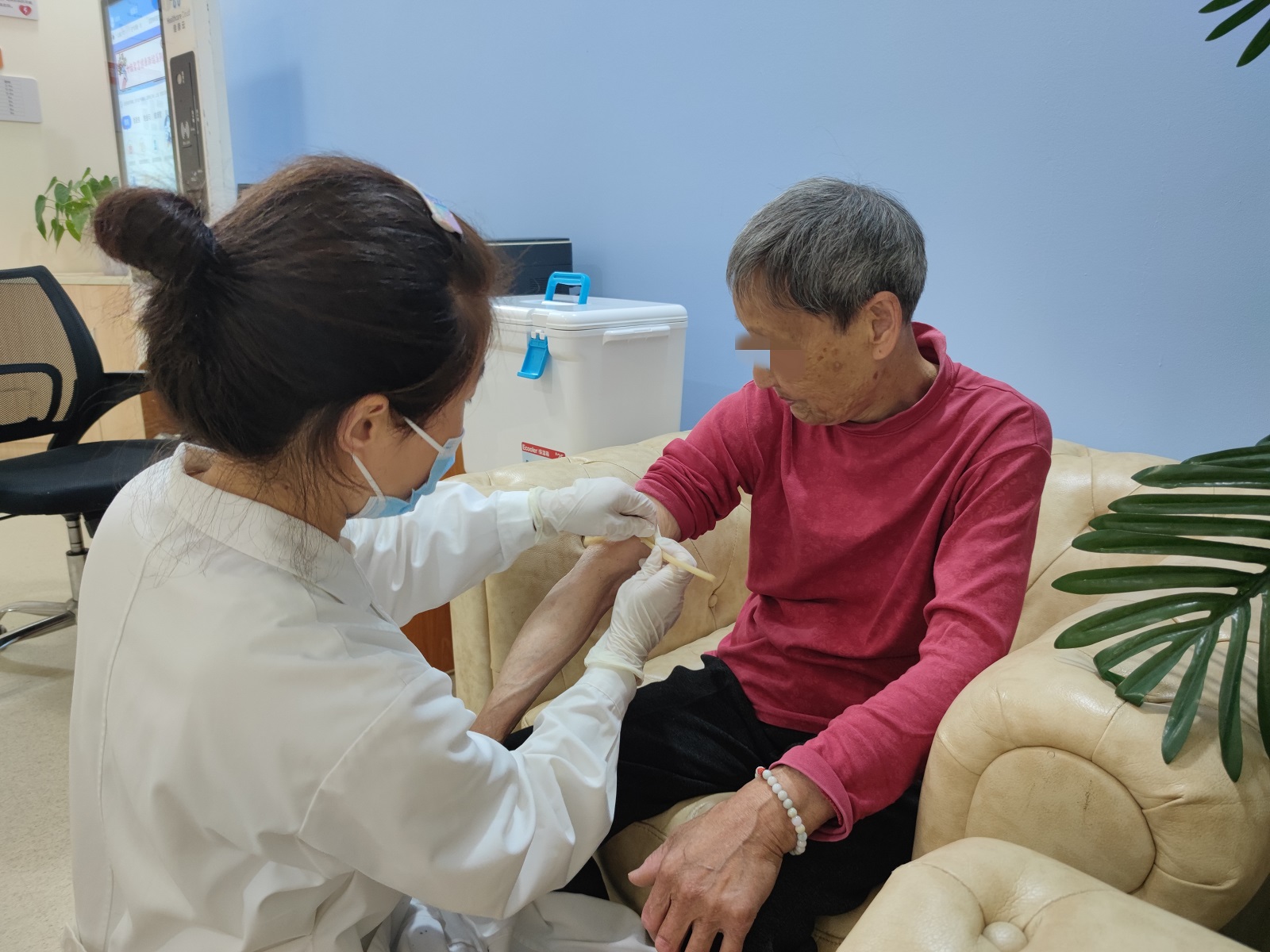 新金桥金杨养老院的赵爷爷今年88岁高龄,患有痛风。半年前他痼疾发作,经过养老院内医生检查,被告知需要进行进一步的诊疗。但是由于赵爷爷身体状况较差,脚肿得每走一步都疼得叫出声来,去医院就医成了一桩难事。