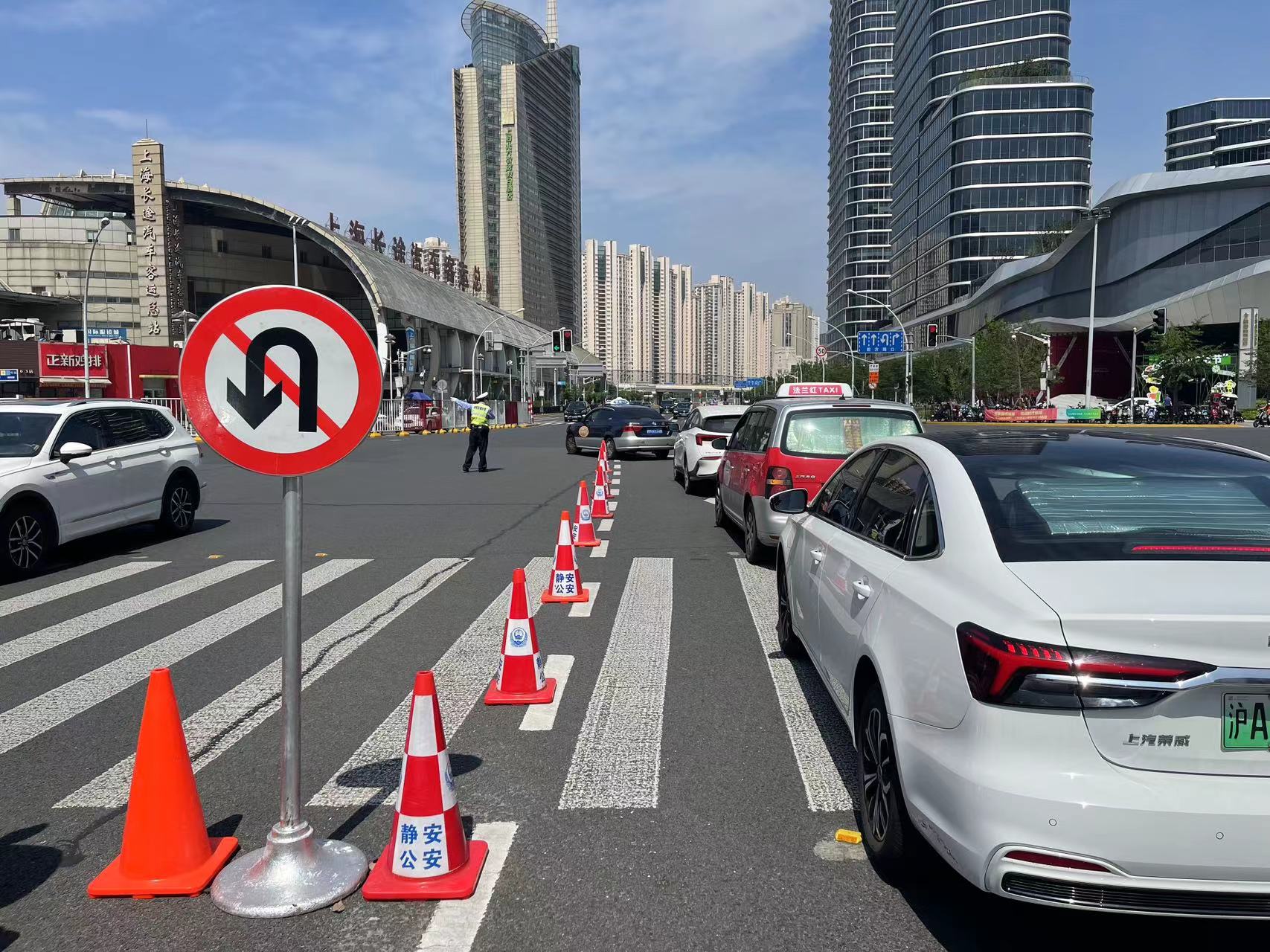 早晨8时许,位于上海火车站南广场一侧的秣陵路车流密集,上海站地区治安派出所民警王奇敏、孙阳引导转弯接送旅客的车辆行驶至火车站南广场西侧的临时停车区域,指挥疏导秣陵路右转及直行车辆快速通过,避免后方车辆积压,影响到道路正常通行秩序。