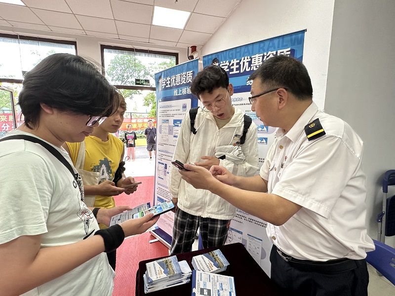 “暑期是学生使用学生优惠凭证的高峰,我们排摸到不少师生想要了解火车票学生优惠资质网上核验相关内容。我们主动走进校园,让师生‘少跑路’,不出校园也能感受到铁路给大家带来的便利。”铁路上海站售票车间“心尚”服务工作室领衔人从上珠表示。
