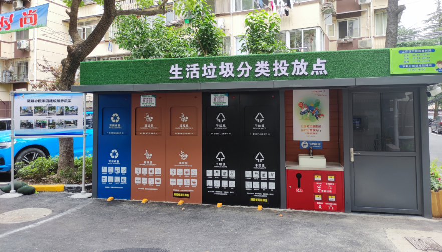 在虹口区灵新小区,通过垃圾房智能化改造,3个智能生活垃圾房实现自动喷淋除臭、紫外线杀菌、满溢识别、智能提醒等升级功能,让老小区焕发新活力。