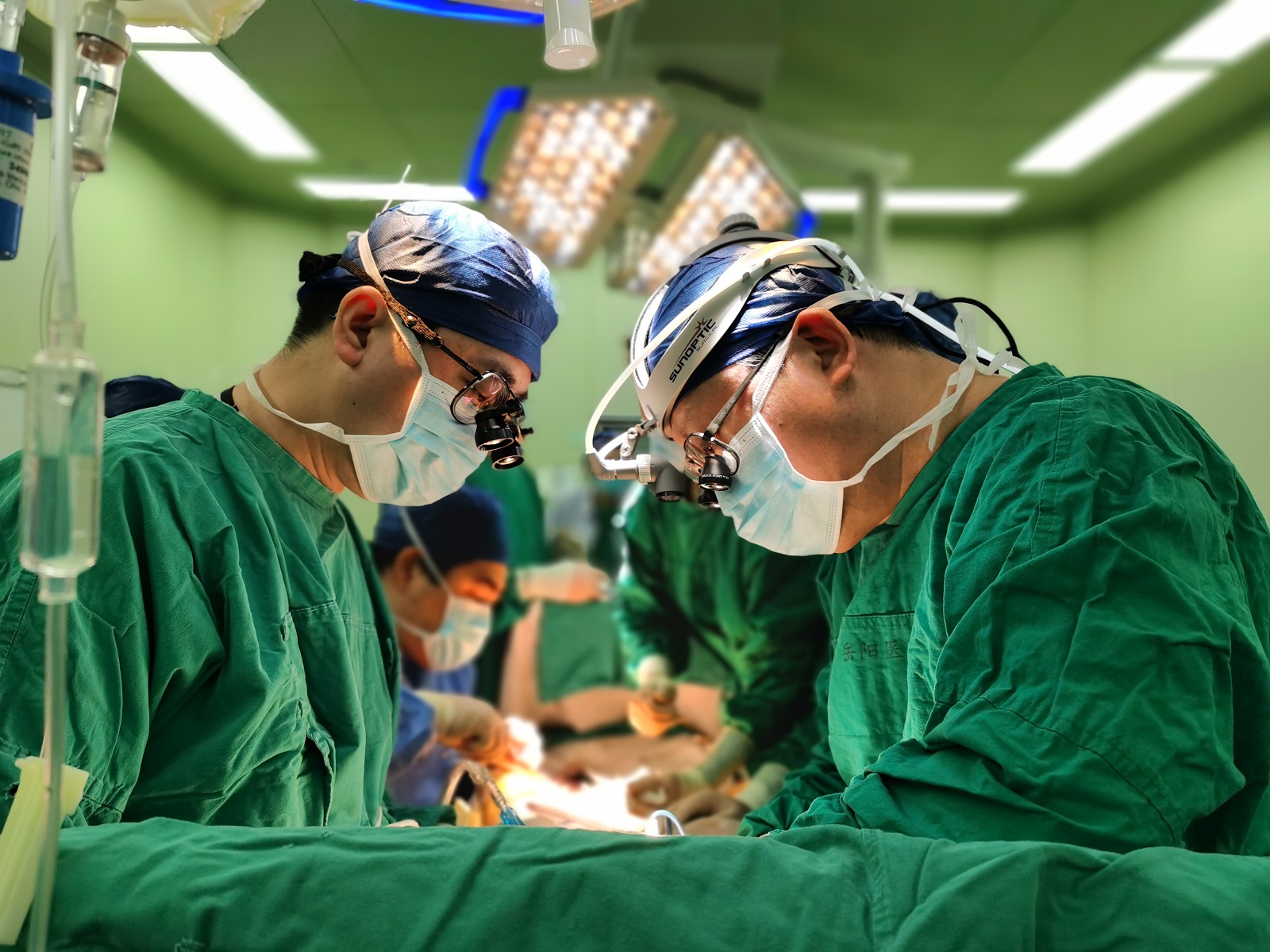 头图为周嘉教授(右)行现代针刺麻醉无气管插管心脏手术。岳阳医院供图