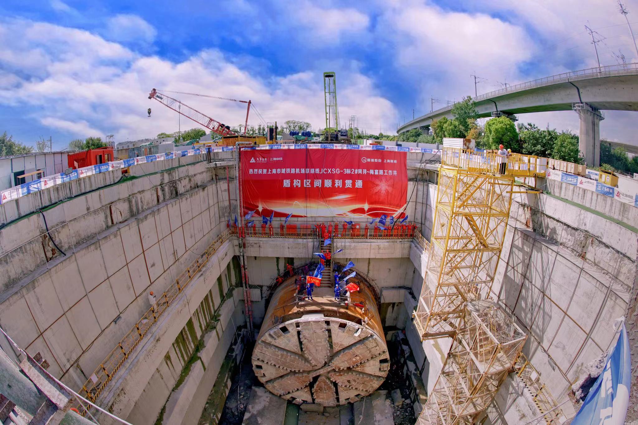 机场联络线3标项目包含梅富路盾构始发井和3#风井,盾构区间全长约7.855公里。其中,梅富路工作井至3#风井至2#风井隧道区间全长约5.685公里,华泾站至梅富路工作井区间盾构隧道全长约2.17公里,分别由“骥跃号”和“骐跃号”两台14米级超大盾构机进行掘进施工。