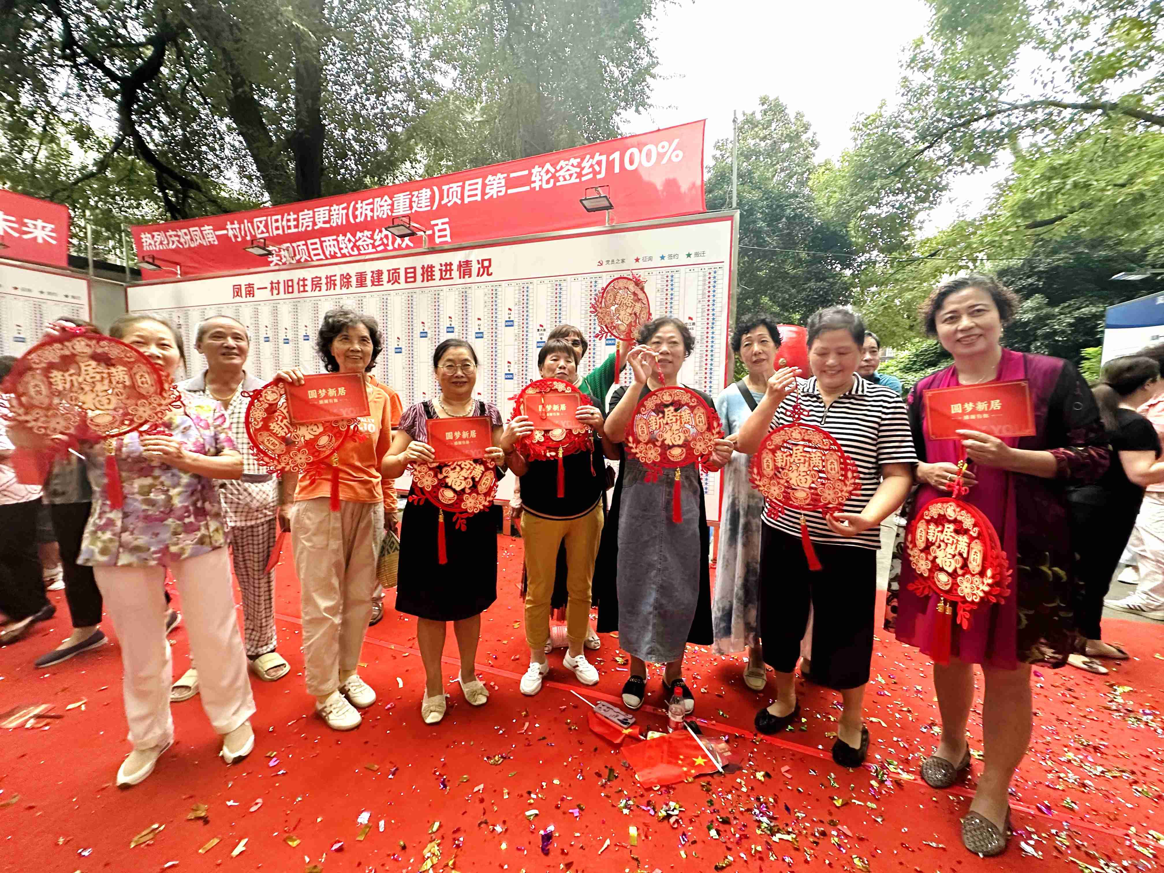 今年3月29日,杨浦区委区政府下大决心,正式启动凤南一村拆除重建项目第一轮书面征询,得到了百姓的积极拥护和热烈欢迎。在市、区房管局等单位的通力合作和凤南居民的积极响应下,凤南提前7天实现了第一轮同意率100%。8月28日,项目又迎来第二轮正式签约这一重要节点,当天签约率98.07%,实现项目签约首日高比例生效。9月25日,随着最后一户居民专程从日本赶回来完成签约,凤南一村1813户居民仅仅用了29天完成了二轮签约100%。