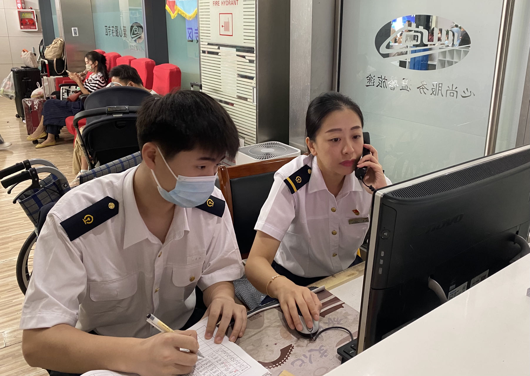 出行高峰,重点旅客的数量也会增多。9月28日,重点旅客达到了110多位;27日,重点旅客超过了170位……服务台上,有一张整整齐齐写满黑色、红色字迹的清单,密密麻麻列着重点旅客的需求。“这也是我们摸索出来的一种工作方法,按照时间顺序把旅客需求列下来,会看得更加清晰。清单上黑字是旅客的基本信息,红字是他们的特殊需求,比如这一位‘引导可能需要红帽子’,就是可能需要行李搬运服务的意思。”周绚介绍道。