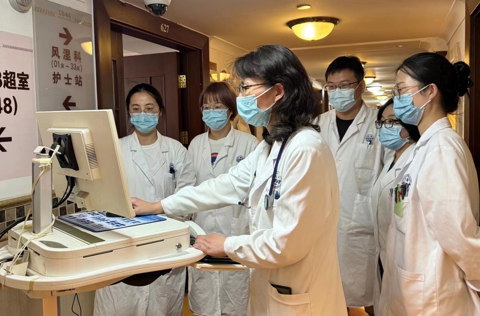 头图为风湿科主任医师陈盛(图中)查房。仁济医院供图