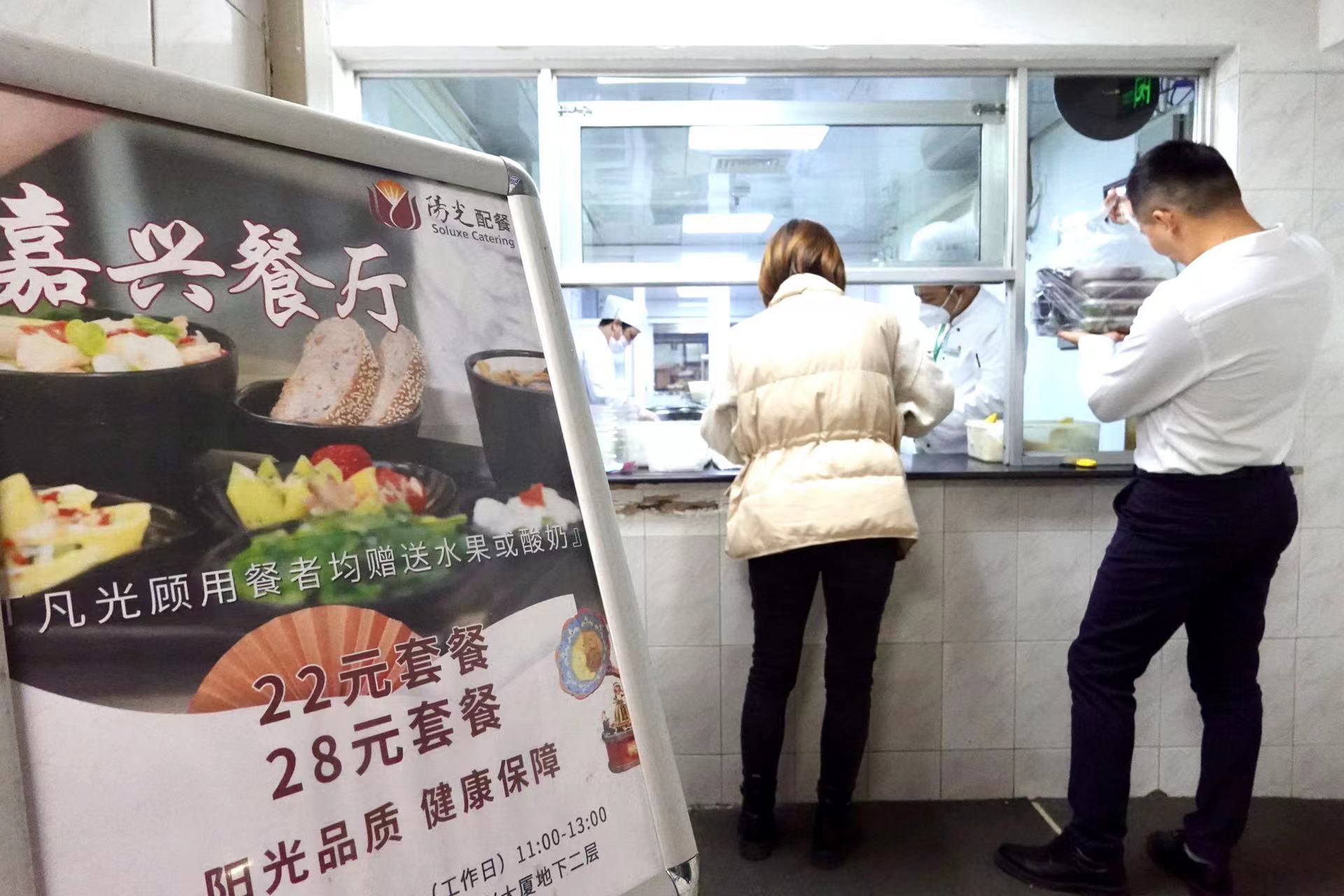 头图为嘉兴大厦职工正在领午餐。劳动报记者贡俊祺 摄影