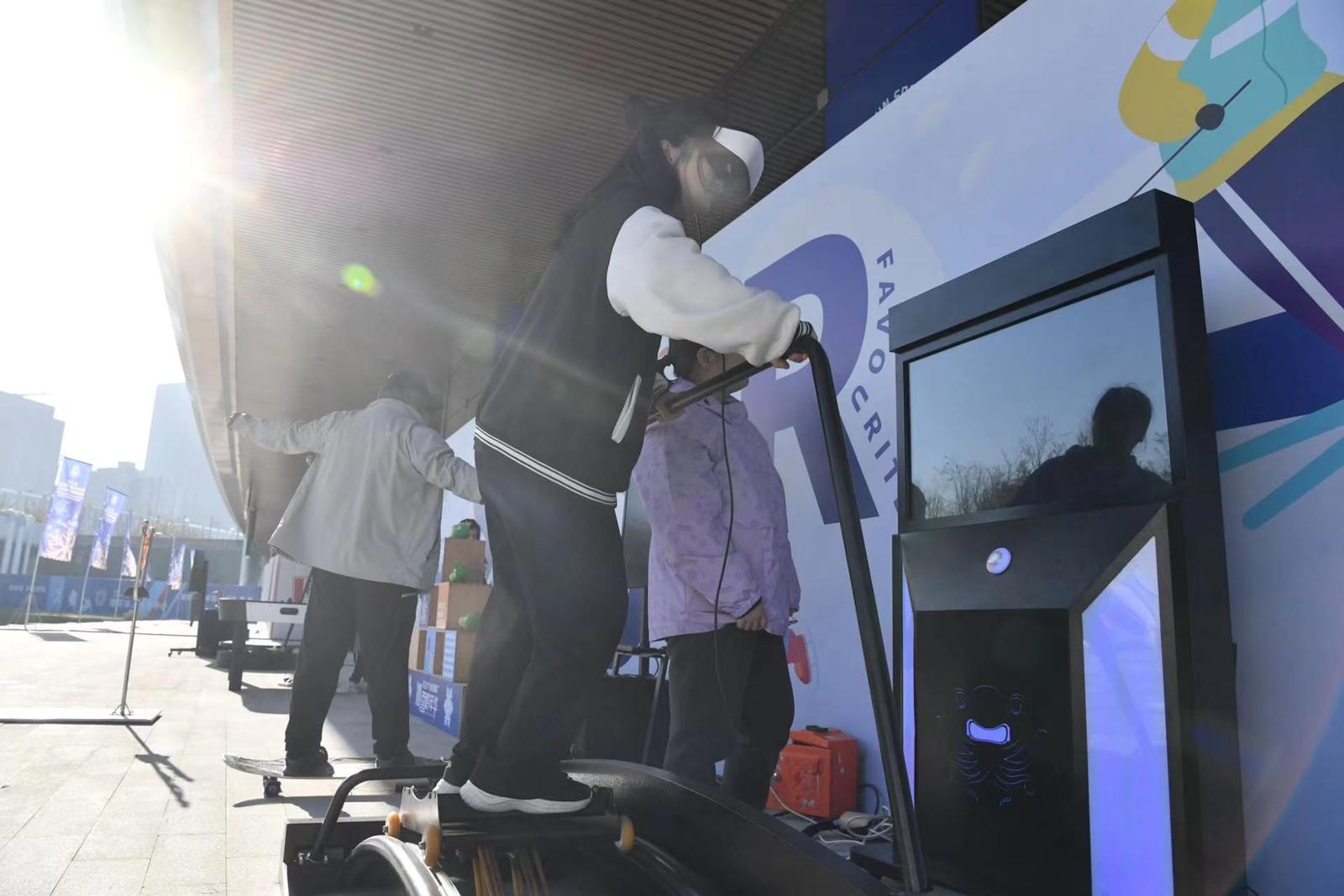 市民体验模拟滑雪机器。劳动报记者贡俊祺 摄影