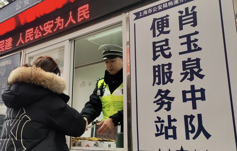“防冰冻物资都配齐了,给群众准备的防寒保暖物品不能忘。”12月15日一早,杨浦交警支队肖玉泉中队的民警平嘉辉就来到了便民服务站,与路口值守警力一起清点物资。