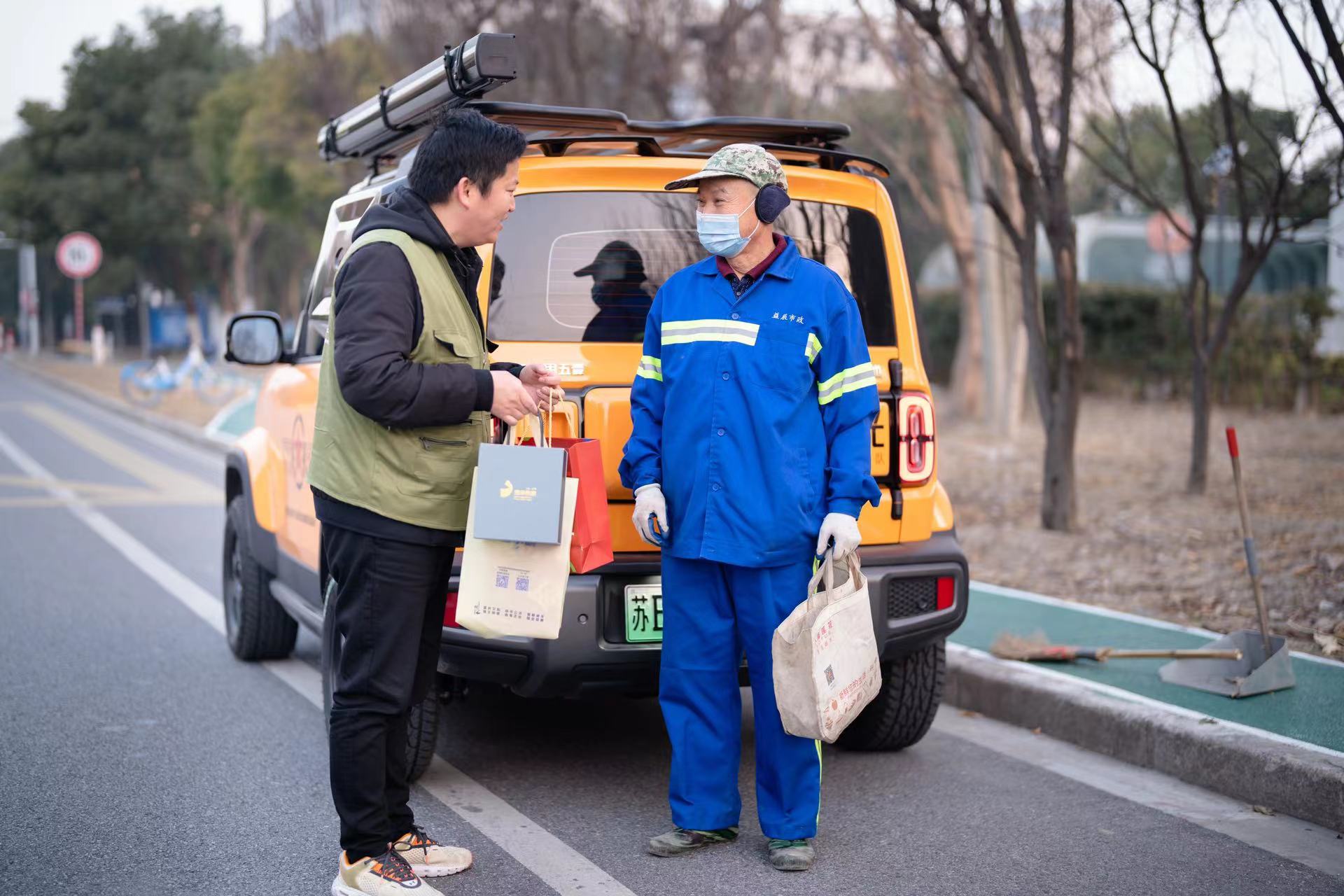 据悉,本次暖心活动,奉贤区组织所有街镇、开发区新时代文明实践分中心共42个点位,在街头向环卫工人、外卖小哥、快递员、交警、保安等户外工作者赠送热茶。除了赠送热茶外,还针对不同对象开展政策集市、暖心补给、集五福互动游戏等暖心服务,并联合上海市慈善基金会奉贤代表处以“一块做好事”为主题,开展爱心募捐、文创义卖等,培育市民奉献精神。