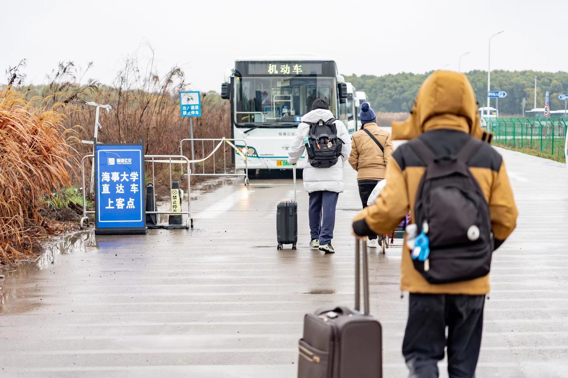 头图为学子们正前往搭乘“返校专车”。临港投控供图