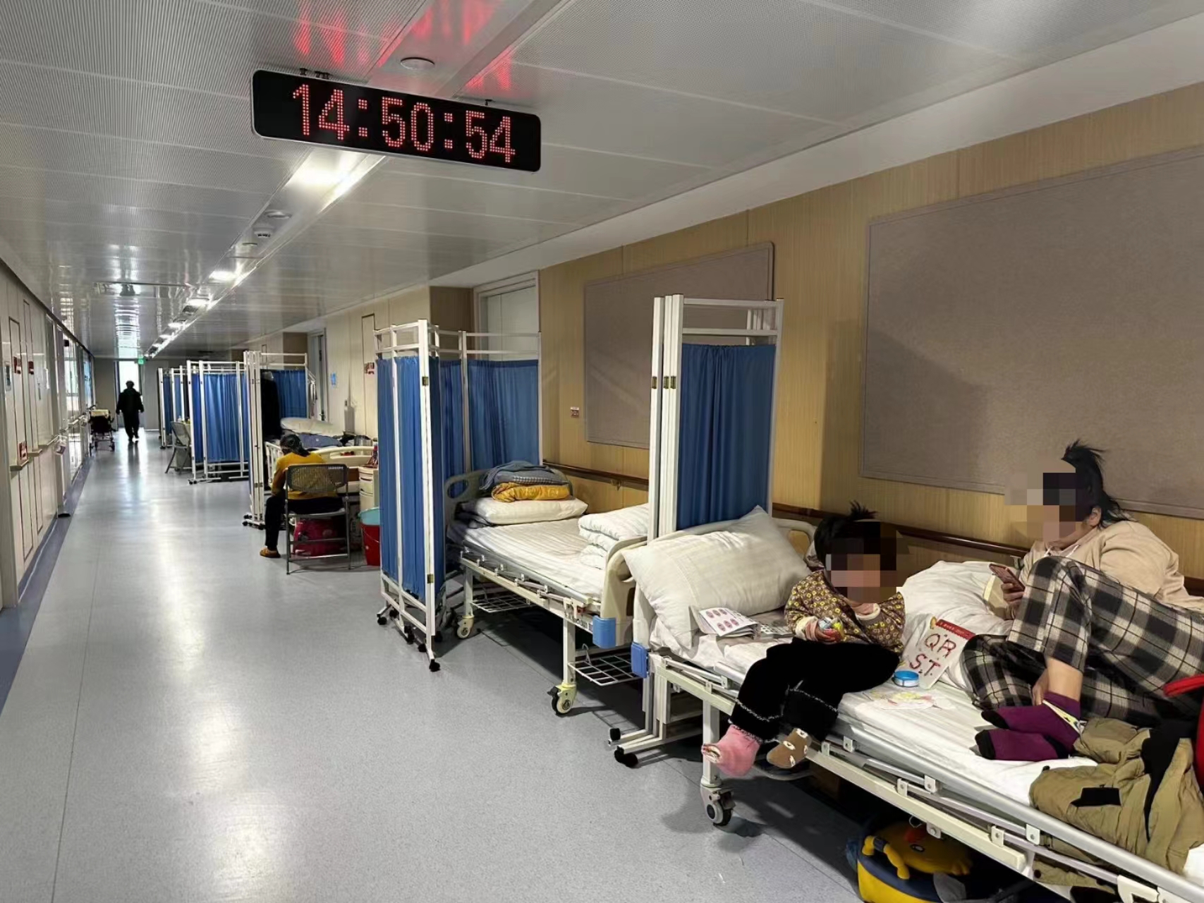院方:实在没床位,走廊都塞满了