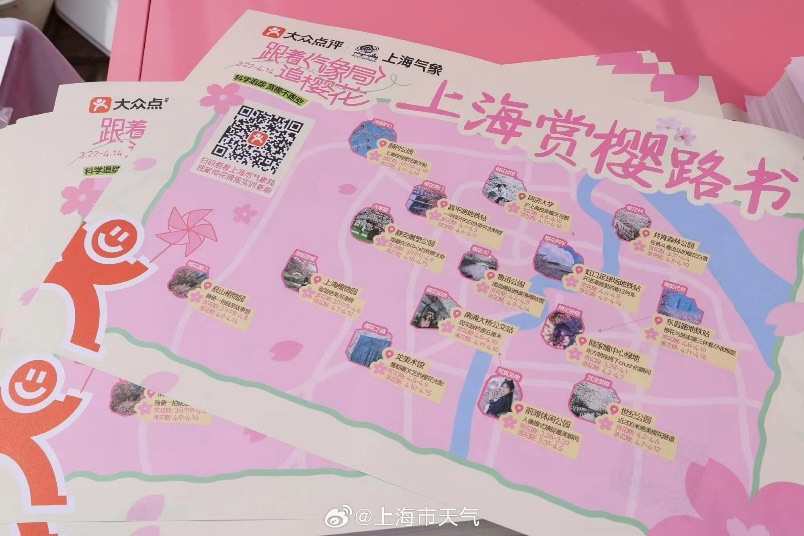头图为大众点评与上海市气象局联手打造的上海赏樱地图。上海市气象局提供