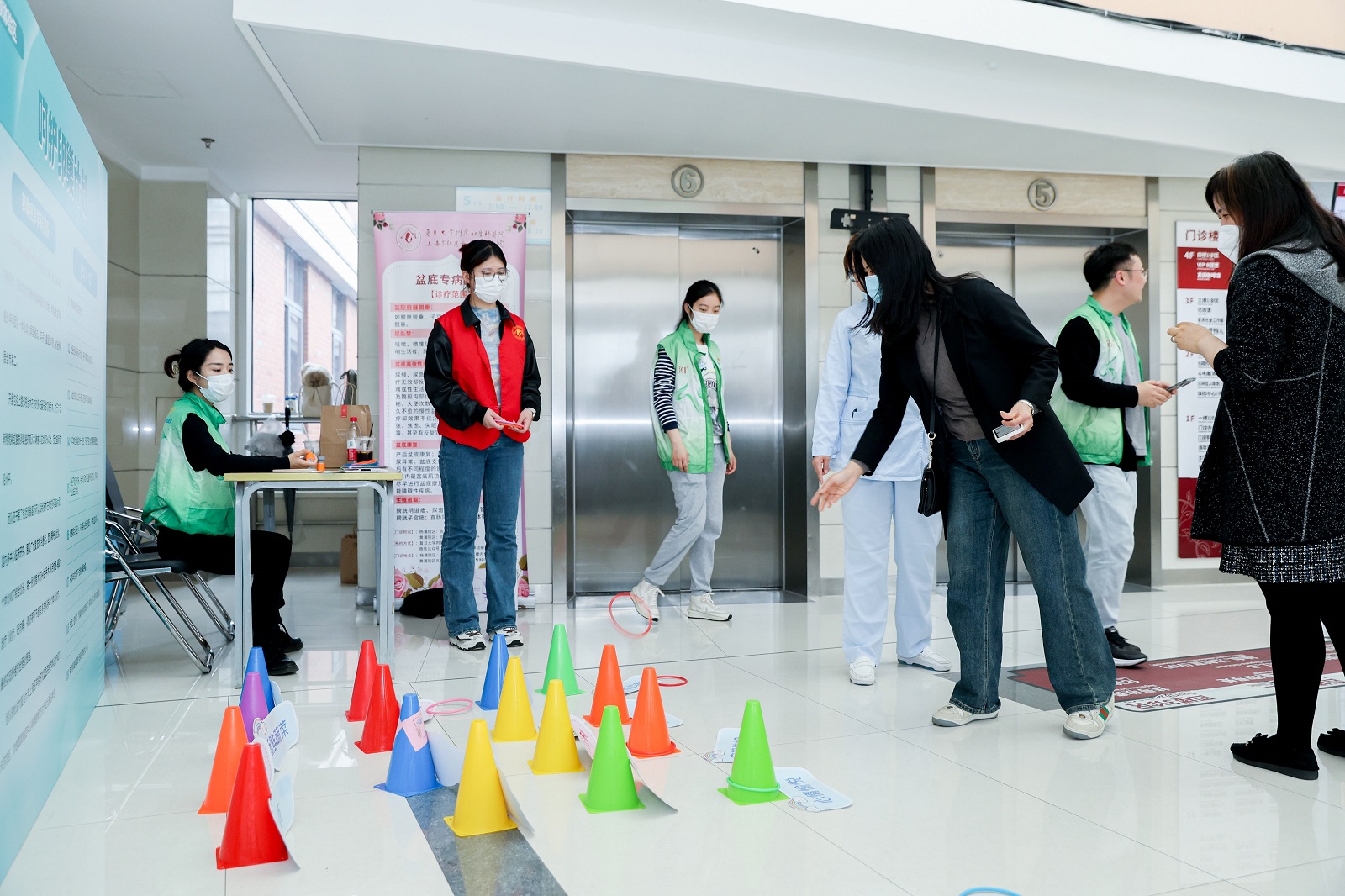 头图为门诊互动游戏吸引患者踊跃参与。妇产科医院供图