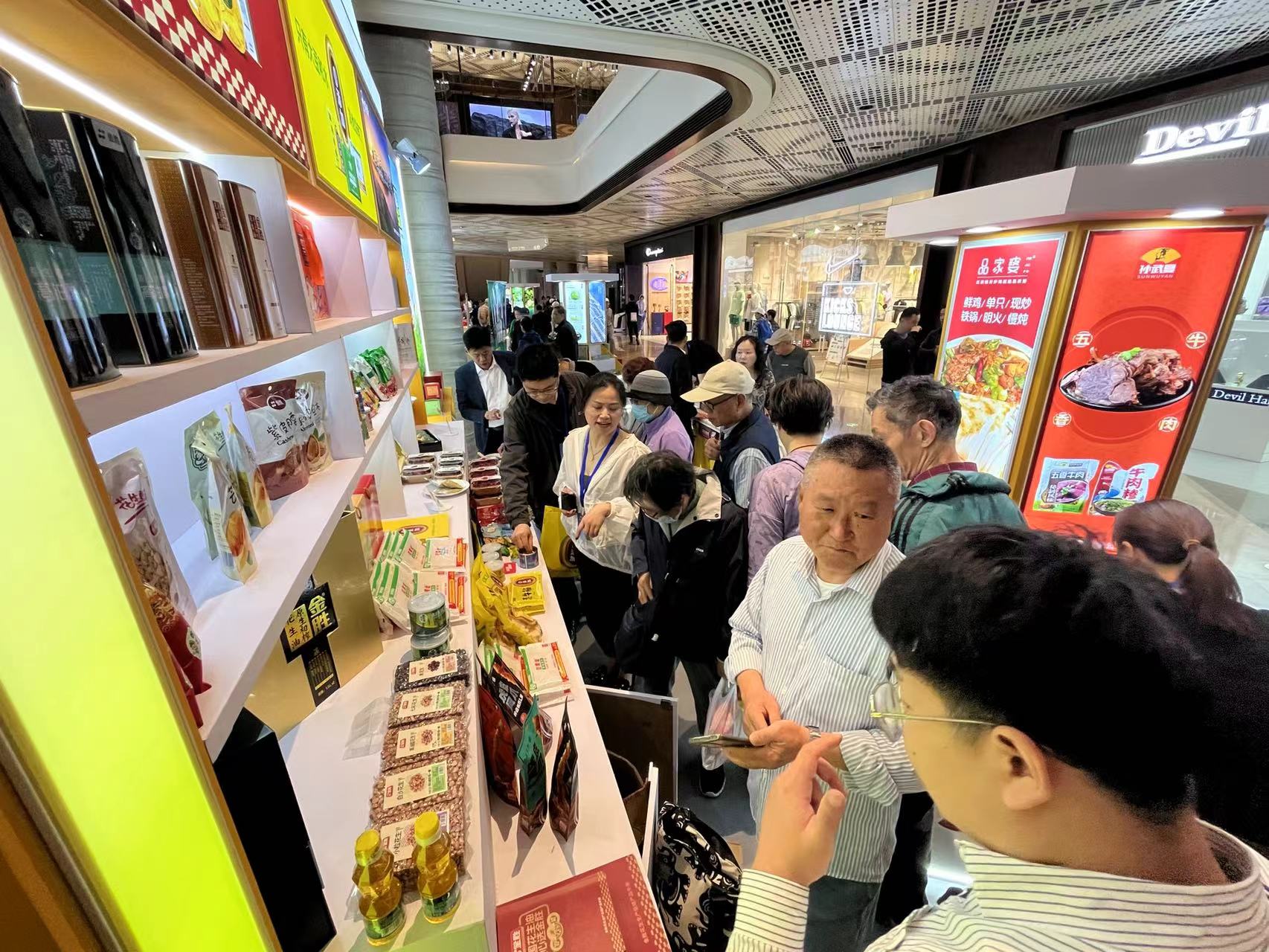 记者见到,在L层中庭区域,章丘大葱、平阴玫瑰、潍县萝卜、峄城石榴、烟台苹果等优质农特产品齐上阵,种类丰富、亮点纷呈,市民们热情上前品鉴产品、询问讨价、拍照打卡。