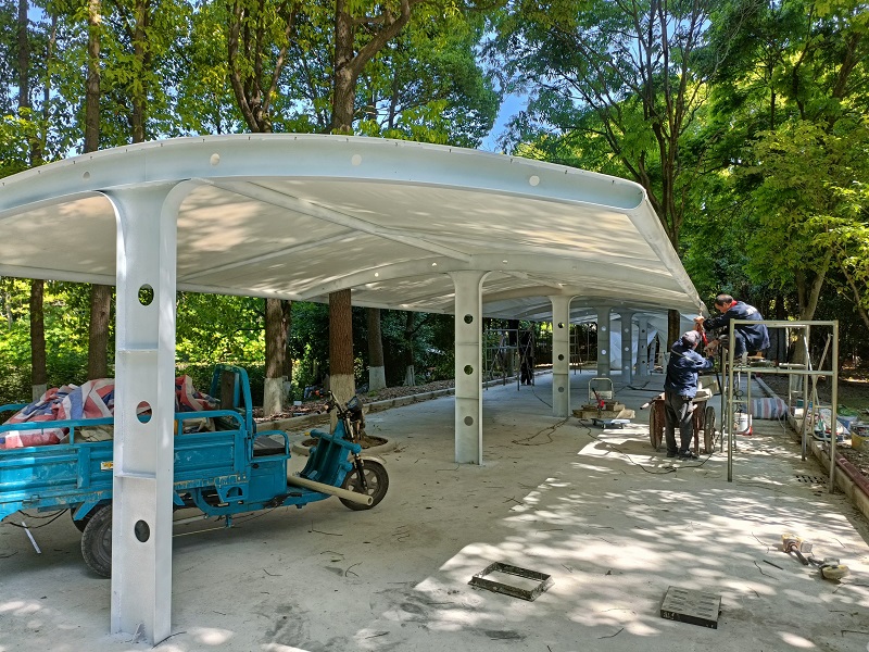 头图为正在建设中的非机动车停车棚。受访单位供图