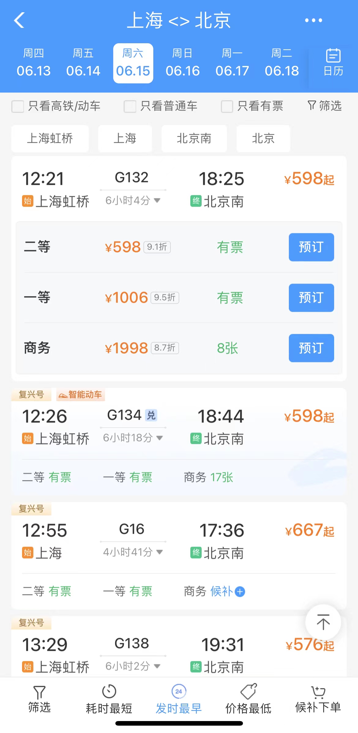 6月5日,记者搜索了铁路12306APP、铁路官网等官方购票平台后发现,并未查询到高铁列车的售票信息里具备“优选一等座”的选项。例如,上海—北京、上海—广州、上海—成都等热门线路之间的高铁线上,记者就都未查询到“优选一等座”的身影。