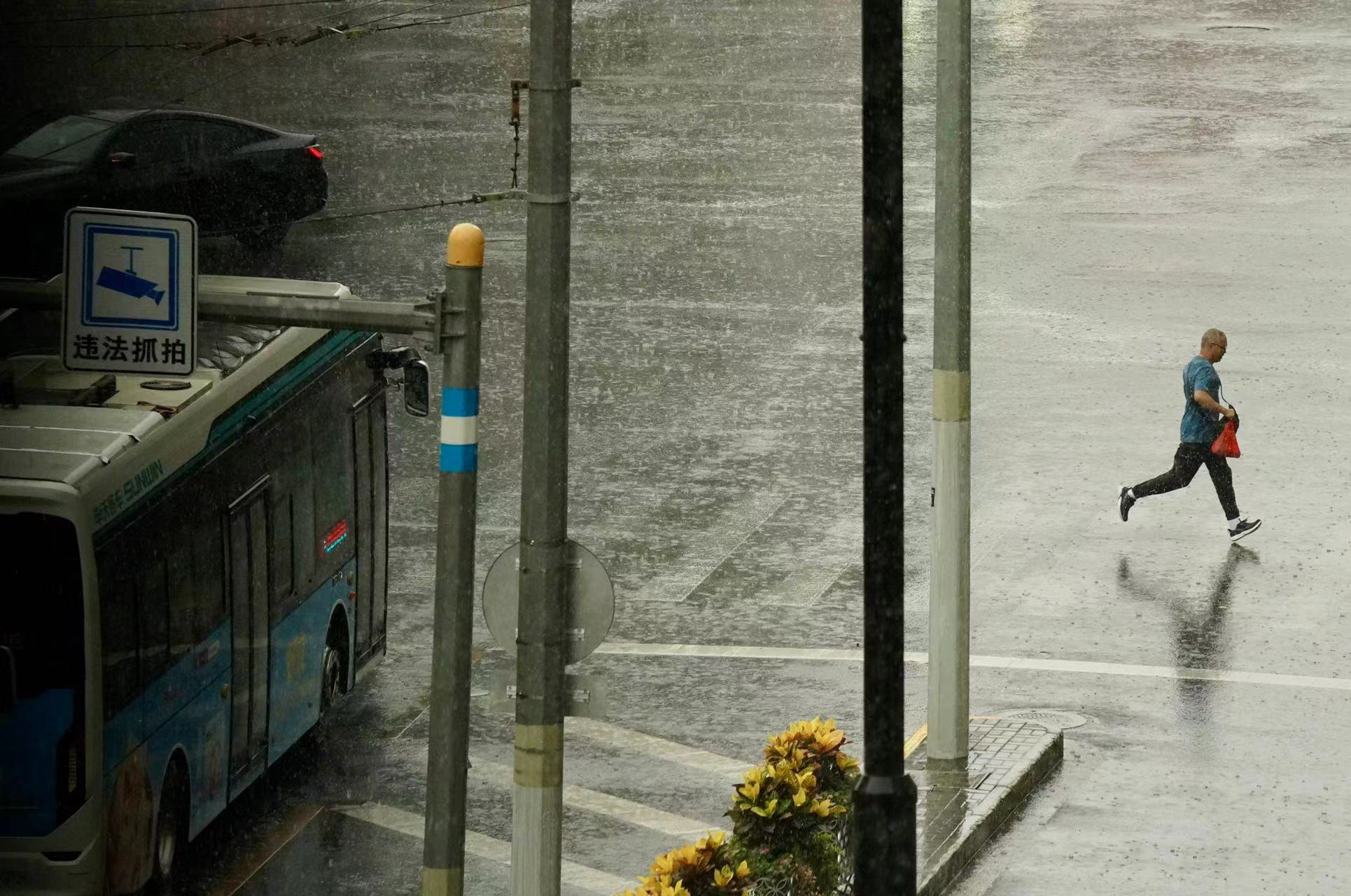 头图为暴雨中的市民。劳动报记者贡俊祺摄影